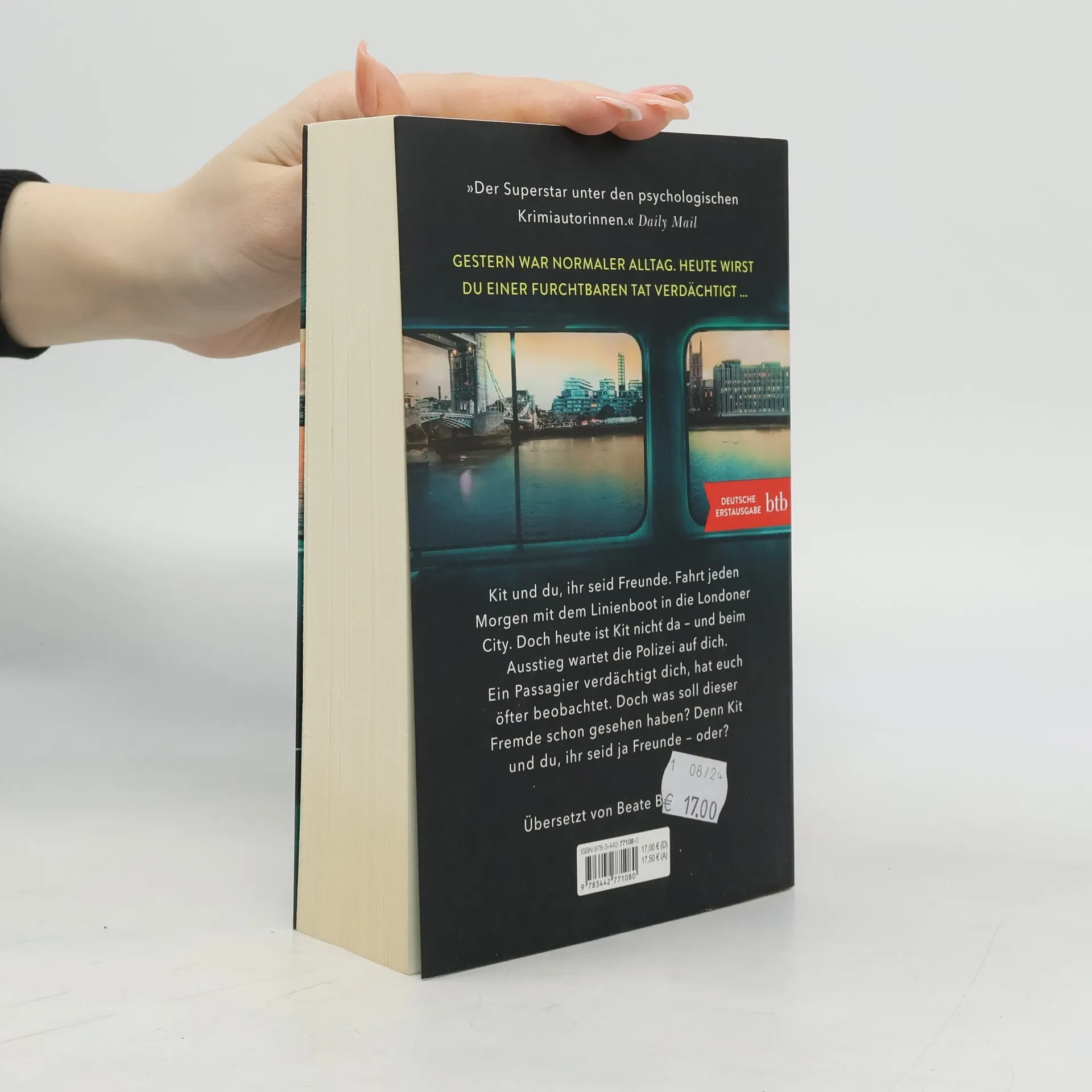 Gestern lebst du noch deinen Alltag. Heute wirst du von der Polizei des Mordes verdächtigt … Es ging alles so schnell. An einem Tag lebst du höchst zufrieden deinen Alltag, fährst wie immer mit dem Linienboot in die Londoner city, zusammen mit deinem sympathischen Nachbarn Kit. Am nächsten Tag wird Kit als vermisst gemeldet. Als du aus dem Boot aussteigen willst, wartet bereits die Polizei. Ein anderer Passagier hat gesehen, wie du mit Kit am Abend zuvor gestritten hast. Die Polizei geht davon aus, du hättest ein Motiv für einen Mord. Du bist entsetzt, protestierst. Kit und du, ihr seid Freunde, das weiß doch jeder. Doch wer genau ist dieser andere Passagier, der mit dem Finger auf dich zeigt? Was weiß er über dein Leben? Was hat er noch alles beobachtet? Aber das ist egal, denn du bist ja komplett unschuldig. Oder?