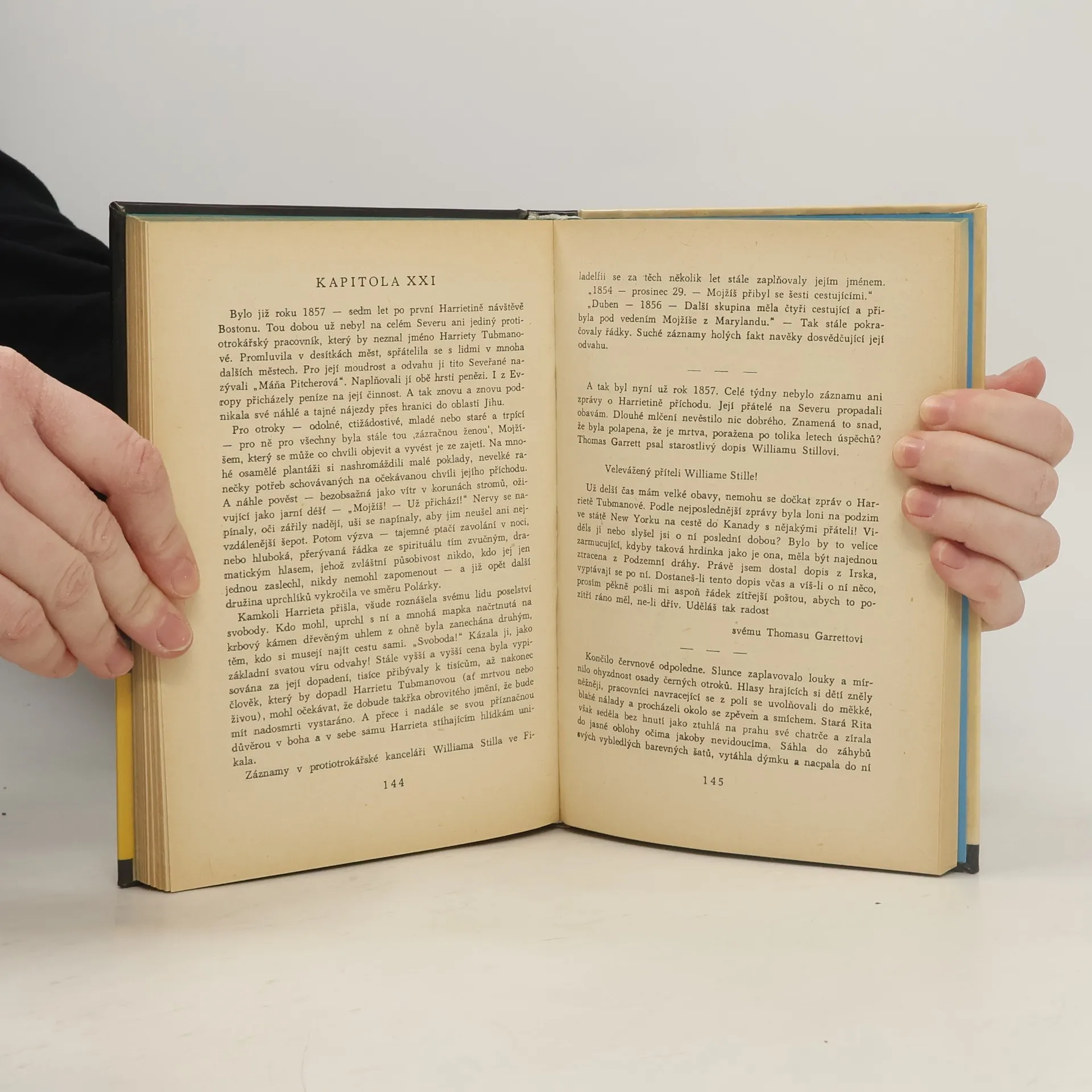 Na památku Harriety Tubmanové. Narozena jako otrokyně v Marylandu okolo r. 1821. Zemřela v Auburnu stát New York, dne 10. března 1913. Nazývána v průběhu občanské války Mojžíšem svého lidu. Se vzácnou odvahou vyvedla víc než 300 černochů z otroctví na svobodu a vykonala neocenitelné službyjako ošetřovatelka a vyzvědačka. Odvážila se každého nebezpečí a překonala každou překážku. K tomu všemu byla nadána mimořádnou předvídavostí a rozvahou, takže podle pravdy mohla říci: „Na své dráze jsem nikdy jediný vlak nevykolejila. Aniž o jediného pasažéra nepřišla.“ Takhle zní nápis na pamětní desce v americkém městě Auburnu. Kdo byla Harrieta Tubmanová? Co byla její „podzemní dráha" ? To všechno se dozvíte, až si přečtete tuhle knihu. Černošská otrokyně, která nejenže sama uprchla z otroctví na svobodu, ale převedla stejnou cestou na svobodu i na 300 jiných otroků, dívka, která se aktivně zúčastnila války Severu proti Jihu, je se svou chytrostí, obratností, vynalézavostí, obětavostí i neohrožeností postava určitě mimořádná. A mimořádně a pestré jsou také události jejího nelehkého života, všechna její dobrodružství, která budete moci v knize sledovat. Nejsou o nic méně napínavá, proto, že jsou pravdivá. (V