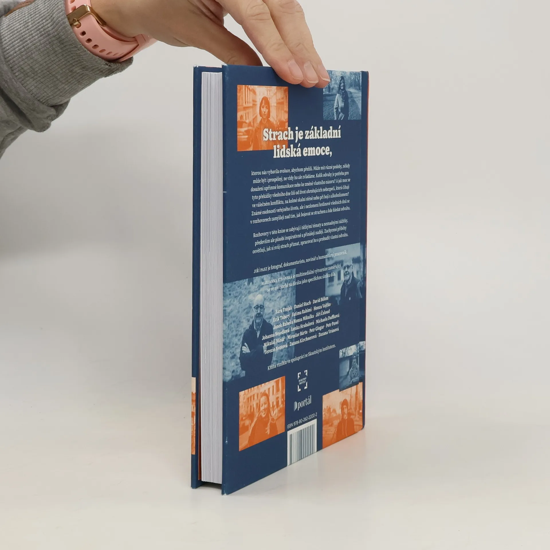 Strach je základní lidská emoce, kterou nás vybavila evoluce, abychom přežili. Může mít různé podoby od obav, přes hrůzu až po panické zděšení. Ne vždy je ale strach prospěšný, a ne vždy ho zvládáme. Kolik odvahy je potřeba pro dosažení upřímné komunikace nebo ke změně vlastního názoru? K dosažení blízkosti či přijetí odloučení? A jak moc se tyto překážky všedního dne liší od život ohrožujících nebezpečí, které číhají ve válečném konfliktu, na kolmé skalní stěně nebo při boji s alkoholismem? Známé osobnosti veřejného života, ale i nezlomení hrdinové všedních dnů se v rozhovorech zamýšlí nad tím, jak bojovat se strachem a kde hledat odvahu. Příběhy rozhovorů se zabývají i těžkými tématy a nesnadnými zážitky, primárně ale působí nadějeplně a inspirativně. Zachycené osudy osvětlují cestu k tomu si svůj strach přiznat, zpracovat ho a probudit vlastní odvahu. Jiří Pasz je fotograf, dokumentarista, novinář a humanitární pracovník. Marianna Stránská je multimediální výtvarnice zaměřující se ve své tvorbě na diváka jako specifickou složku díla.