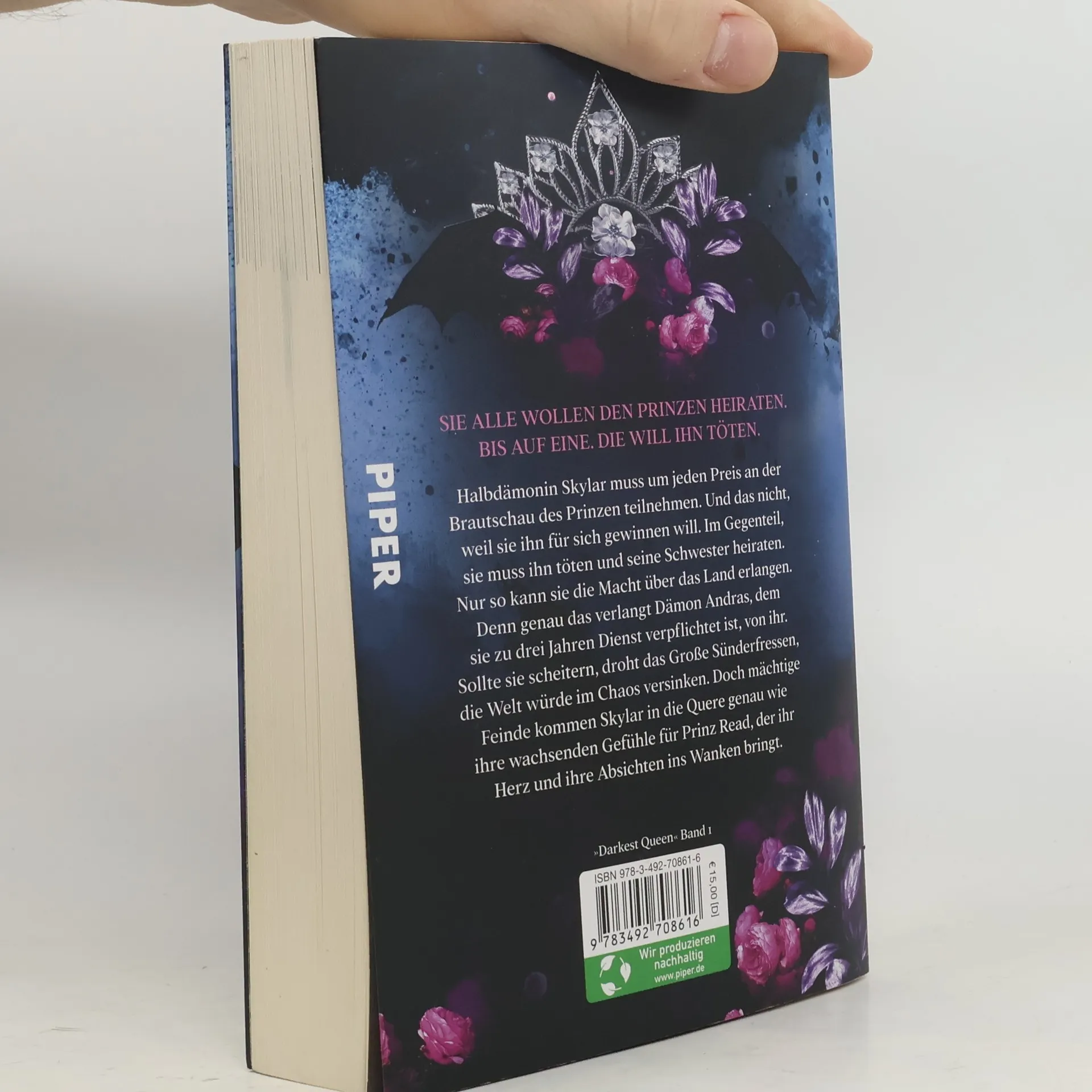 Ein Kuss, der Macht verleiht – doch ist er genug, um die Welt zu retten? 42 Thronanwärterinnen, eine Halbdämonin und der Prinz, den sie umbringen will. Halbdämonin Skylar muss um jeden Preis an der Brautschau des Prinzen teilnehmen. Und das nicht, weil sie ihn für sich gewinnen will. Im Gegenteil, sie muss ihn töten und seine Schwester heiraten. Nur so kann sie die Macht über das Land erlangen. Denn genau das verlangt Dämon Andras, dem sie drei Jahre lang dienen muss, von ihr. Sollte sie scheitern, droht das große Sünderfressen, und die Welt wird im Chaos versinken. Doch mächtige Feinde kommen Skylar in die Quere genau wie ihre wachsenden Gefühle für Prinz Read, der ihr Herz und ihre Absichten ins Wanken bringt. Mitreißend und düster-romantisch!