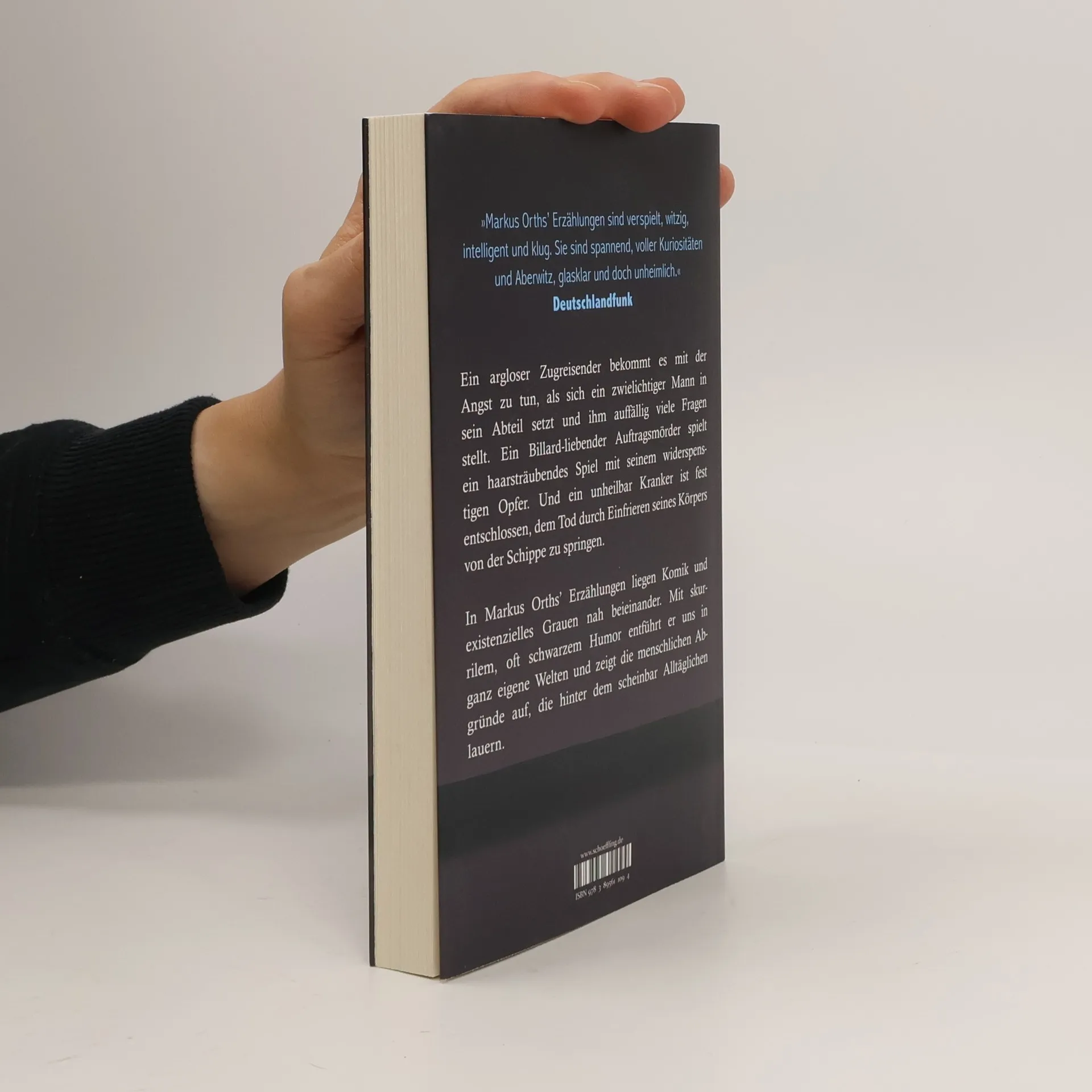 Ein argloser Zugreisender bekommt es mit der Angst zu tun, als sich ein zwielichtiger Mann in sein Abteil setzt und ihm auffällig viele Fragen stellt. Ein Billard-liebender Auftragsmörder spielt ein haarsträubendes Spiel mit seinem widerspenstigen Opfer. Und ein unheilbar Kranker ist fest entschlossen, dem Tod durch Einfrieren seines Körpers ein Schnippchen zu schlagen. In Markus Orths' Erzählungen liegen Komik und existenzielles Grauen nah beieinander. Mit skurrilem, oft schwarzem Humor entführt uns der preisgekrönte Autor in eine ganz eigene Welt und zeigt gewitzt die menschlichen Abgründe auf, die hinter dem scheinbar Gewöhnlichen und Alltäglichen lauern. Mal beklemmend, mal zum Schreien komisch lesen sich die hier ausgewählten Erzählungen von 2001 bis heute (aus Wer geht wo hinterm Sarg, Fluchtversuche und Irgendwann ist Schluss) und laden zum (Neu-)Entdecken dieses begnadeten Erzählers ein. Mit einer neuen, bisher unveröffentlichten Erzählung.