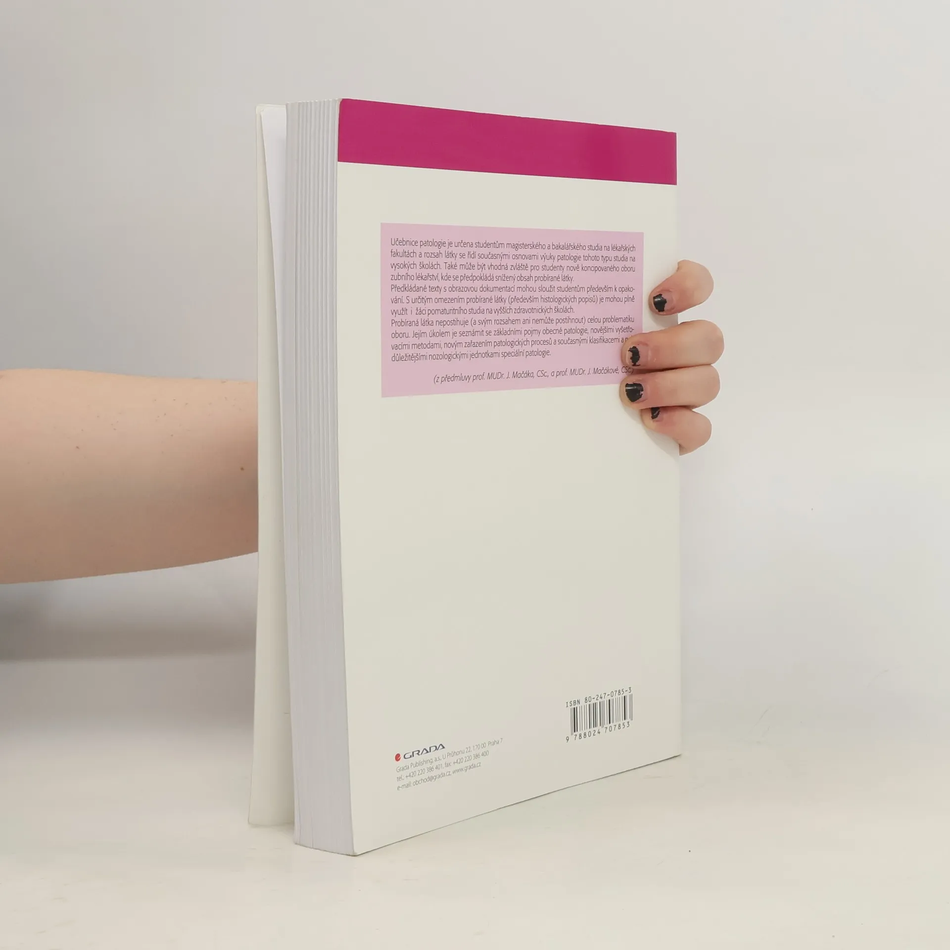 Učebnice je určena pro studenty mgr. a bc. studia na lékařských fakultách, vhodná je i pro studenty oboru zubního lékařství. Seznamuje se základními pojmy obecné patologie, novějšími vyšetřovacími metodami v patologii, novým zařazením patologických procesů, současnými klasifikacemi a nejdůležitějšími nosologickými jednotkami speciální patologie.