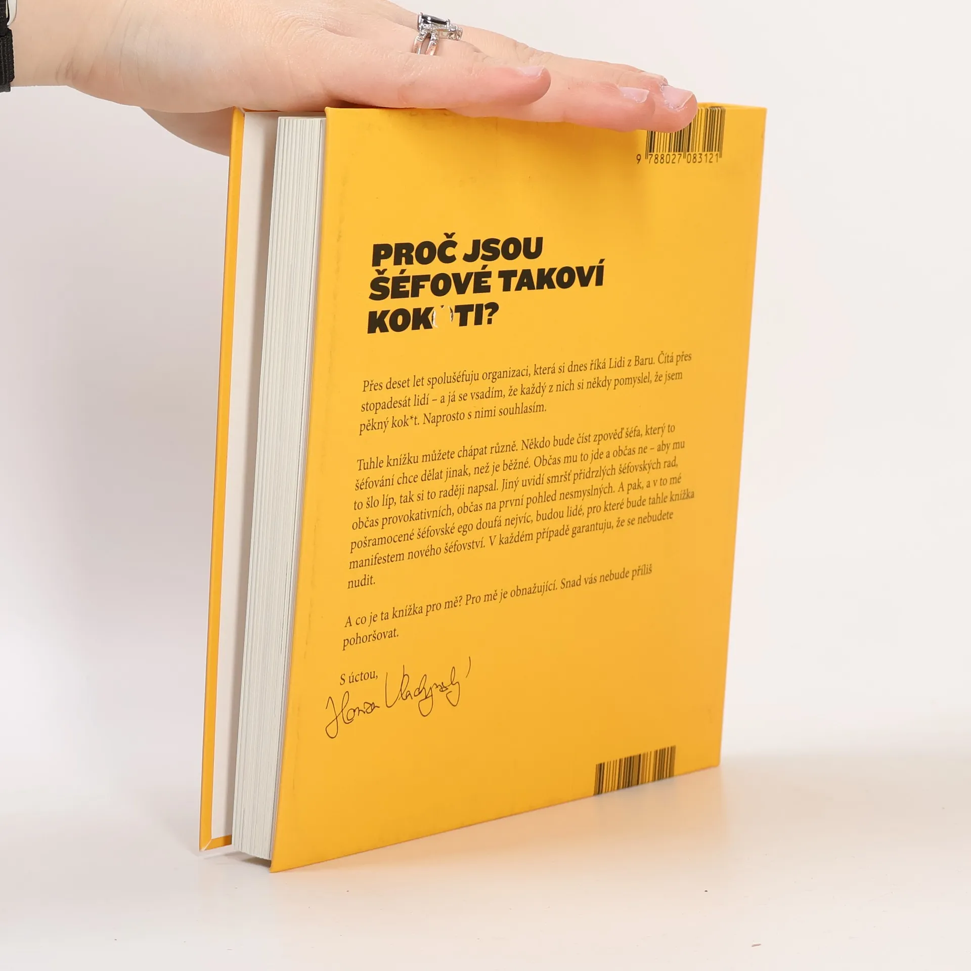 Proč nemotivovat své zaměstnance? Jak se zbavit vizionářství? Kdy neříkat lidem, co mají dělat? Sedmašedesát přidrzlých a provokativních šéfovských rad brněnského podnikatele Jana Vlachynského se snaží odpovědět na základní otázku moderního leadershipu: Jak být jako šéf co nejmenším koktem? Lehce vulgární, ale zato stoprocentně autentický a přísně sebezpytující text odkrývá pozadí fungování úspěšné gastronomické skupiny Lidi z Baru, která zaměstnává přes stopadesát lidí a má na svědomí například populární Bar, který neexistuje, brainhack drink Osmička nebo hotel Anybody. A jednoho šéfa kokota. Tak co, půjdete s Honzou hledat nové šéfovství?