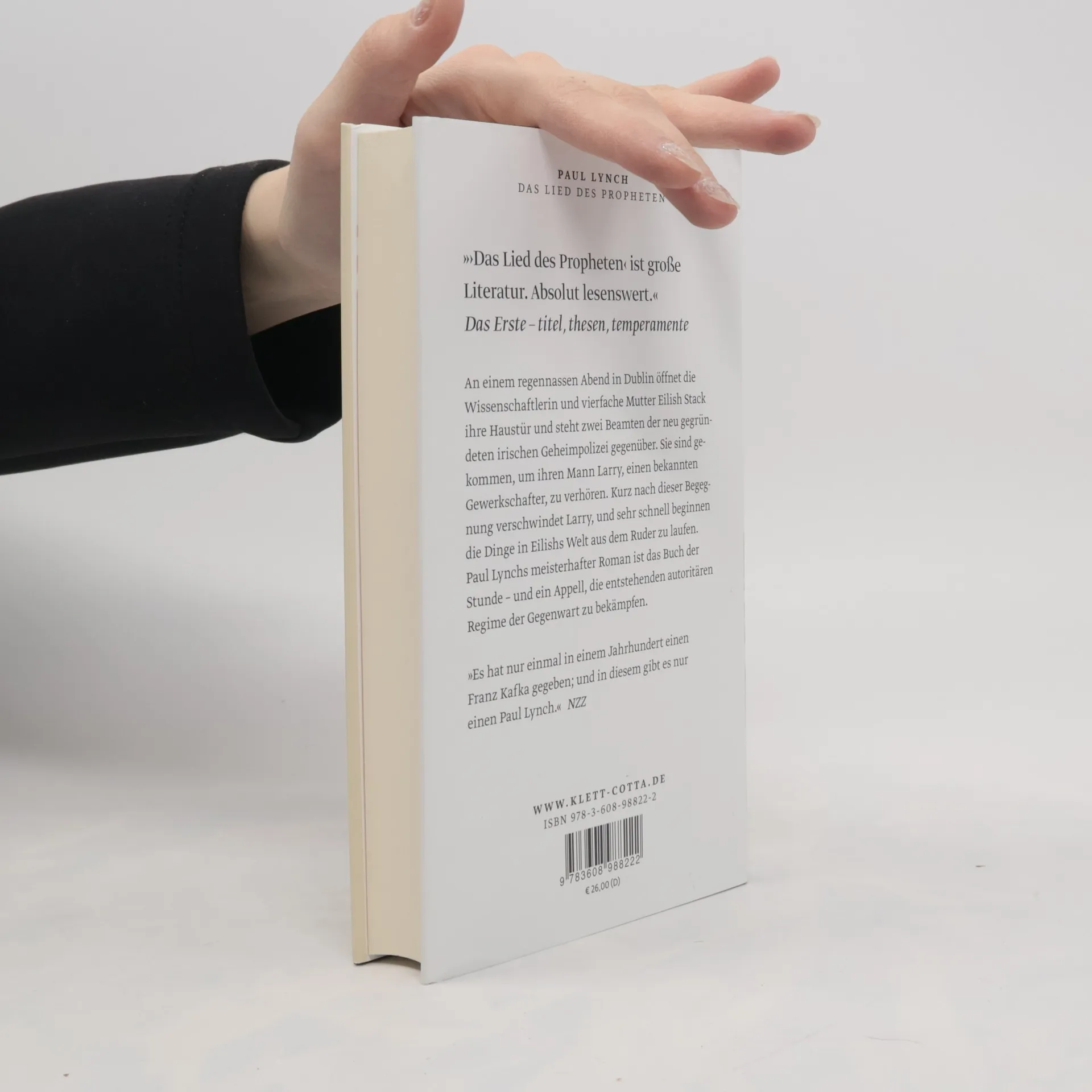An einem regennassen Abend in Dublin öffnet die Wissenschaftlerin und vierfache Mutter Eilish Stack ihre Haustür und steht zwei Beamten der neu gegründeten irischen Geheimpolizei gegenüber. Sie sind gekommen, um ihren Mann Larry, einen bekannten Gewerkschafter, zu verhören. Kurz nach dieser Begegnung verschwindet Larry, und sehr schnell beginnen die Dinge in Eilishs Welt aus dem Ruder zu laufen.Irland befindet sich in der Gewalt einer Regierung, die auf dem Weg in die Tyrannei ist. Eilish findet sich in der alptraumhaften Logik einer kollabierenden Gesellschaft wieder, angegriffen von unsichtbaren Kräften, die sich ihrer Kontrolle entziehen. Sie ist gezwungen, alles zu tun, um ihre Familie zu schützen und alle zusammenzuhalten. Wie soll sie ihren Kindern erklären, was passiert ist, wenn sie nach dem Vater fragen? Wie wird ihr eigener zunehmend dementer Vater auf die gravierenden Veränderungen seines Alltags reagieren? Und wie weit wird Eilish selbst gehen, um sich und ihre Familie zu retten? »Das Lied des Propheten« ist ein atemloses Porträt einer Familie am Rande der Katastrophe, das stilistisch und emotional seinesgleichen sucht. Paul Lynchs meisterhafter Roman ist das Buch der Stunde – und ein Appell, die entstehenden autoritären Regime der Gegenwart zu bekämpfen.