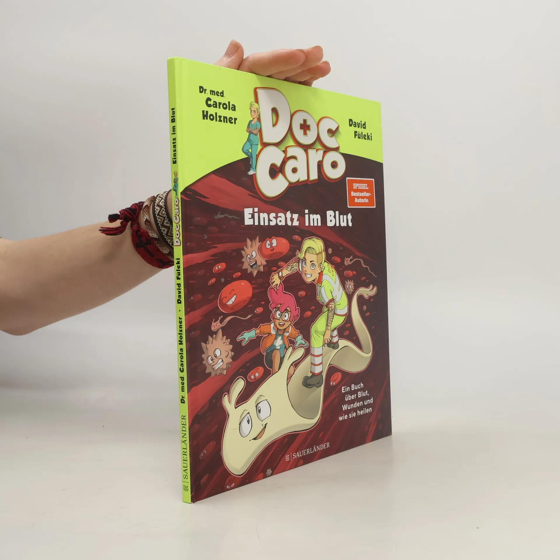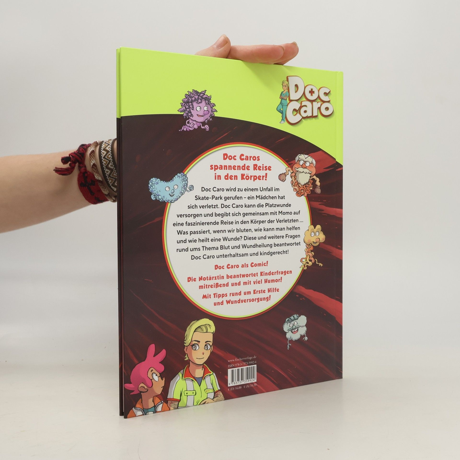 Doc Caros spannende Reise in unseren Körper! Doc Caro wird zu einem Unfall gerufen – ein Mädchen hat sich im Skate-Park verletzt. Doc Caro kann die Platzwunde versorgen und begibt sich gemeinsam mit Momo und den Leser*innen auf eine faszinierende Reise in den Körper der Verletzten ... Was passiert, wenn wir bluten, ist das gefährlich und wie kann man helfen? Diese und weitere Fragen rund ums Thema Wundheilung beantwortet Doc Caro mitreißend und mit viel Humor! Ein Must-have nicht nur für Fans – Mit Tipps rund um Erste Hilfe und Wundversorgung! Von Spiegel-Bestsellerautorin Doc Caro Genial illustriert vom preisgekrönten David Füleki Mit vielen Facts zur Haut, zur Blutgerinnung und zur Wundheilung