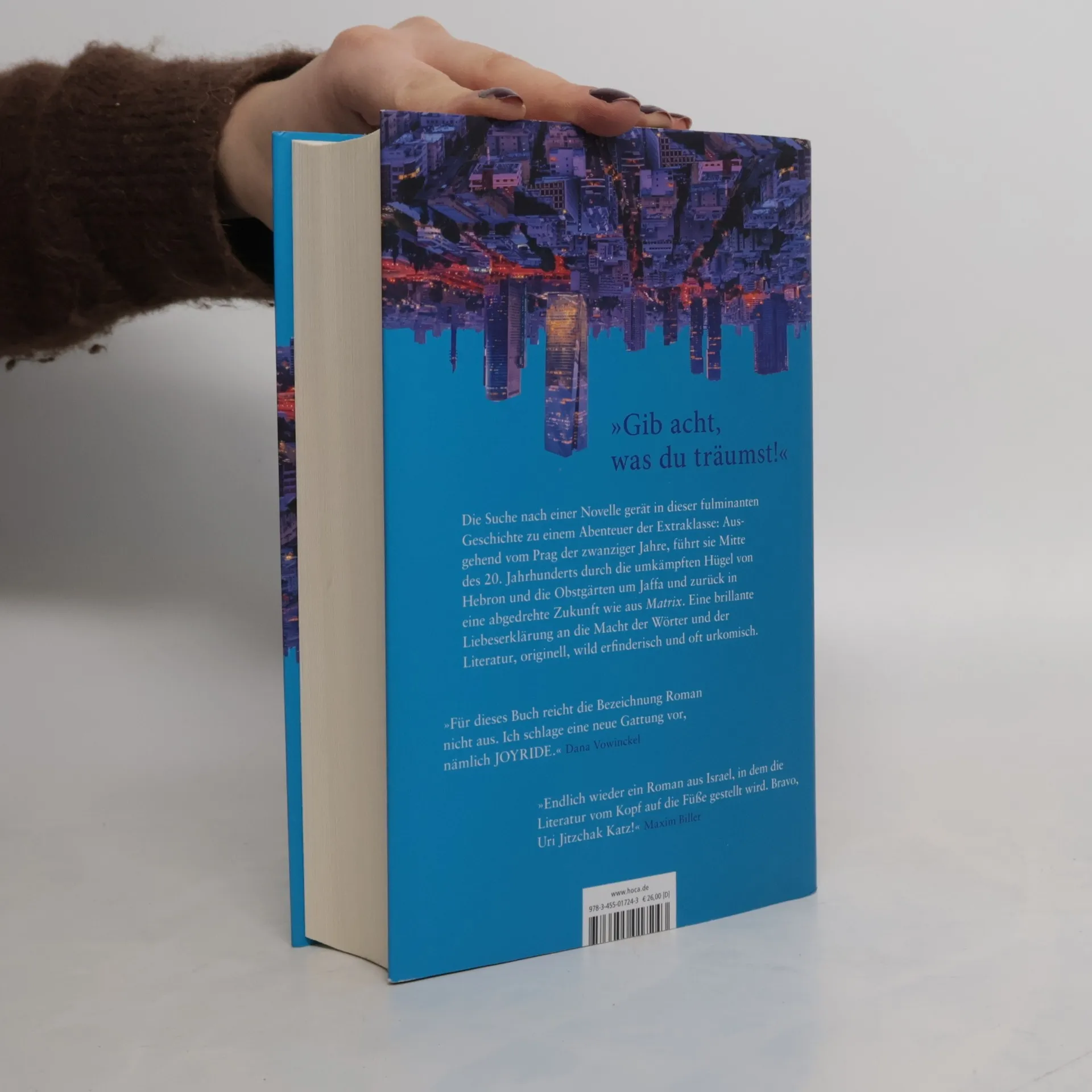 Die Suche nach einer Novelle gerät zu einem Abenteuer der Extraklasse. Sie beginnt im Prag der 1920er Jahre, führt Mitte des 20. Jahrhunderts durch die umkämpften Hügel von Hebron und die Obstgärten um Jaffa und zurück in eine abgedrehte Zukunft wie aus Matrix – «Gib acht, was du träumst!»Alles beginnt mit der sagenhaften Geschichte des Mannes, dessen Gesicht in Grimm erstarrte. Zuerst hört Uri davon in Israel, von seiner Großmutter Zippora. Später schwärmt die heißgeliebte Julia davon. Als Zippora verstirbt und Julia auf rätselhafte Weise verschwindet, macht Uri sich auf die Suche nach der verschollenen Novelle, nach darin verborgenen Zeichen, weil er die Hoffnung nicht aufgibt, Julia wiederzufinden. Uris fieberhafte Besessenheit treibt ihn in wildem Zickzackkurs durch Zeiten und Welten, durch das alte Osteuropa, die Levante und das Internet bis an den Rand des Wahnsinns – hinein in ein zutiefst persönliches Geheimnis. Am Ende muss er sich eingestehen, dass zwar alles einen Sinn ergibt, aber nichts passt.