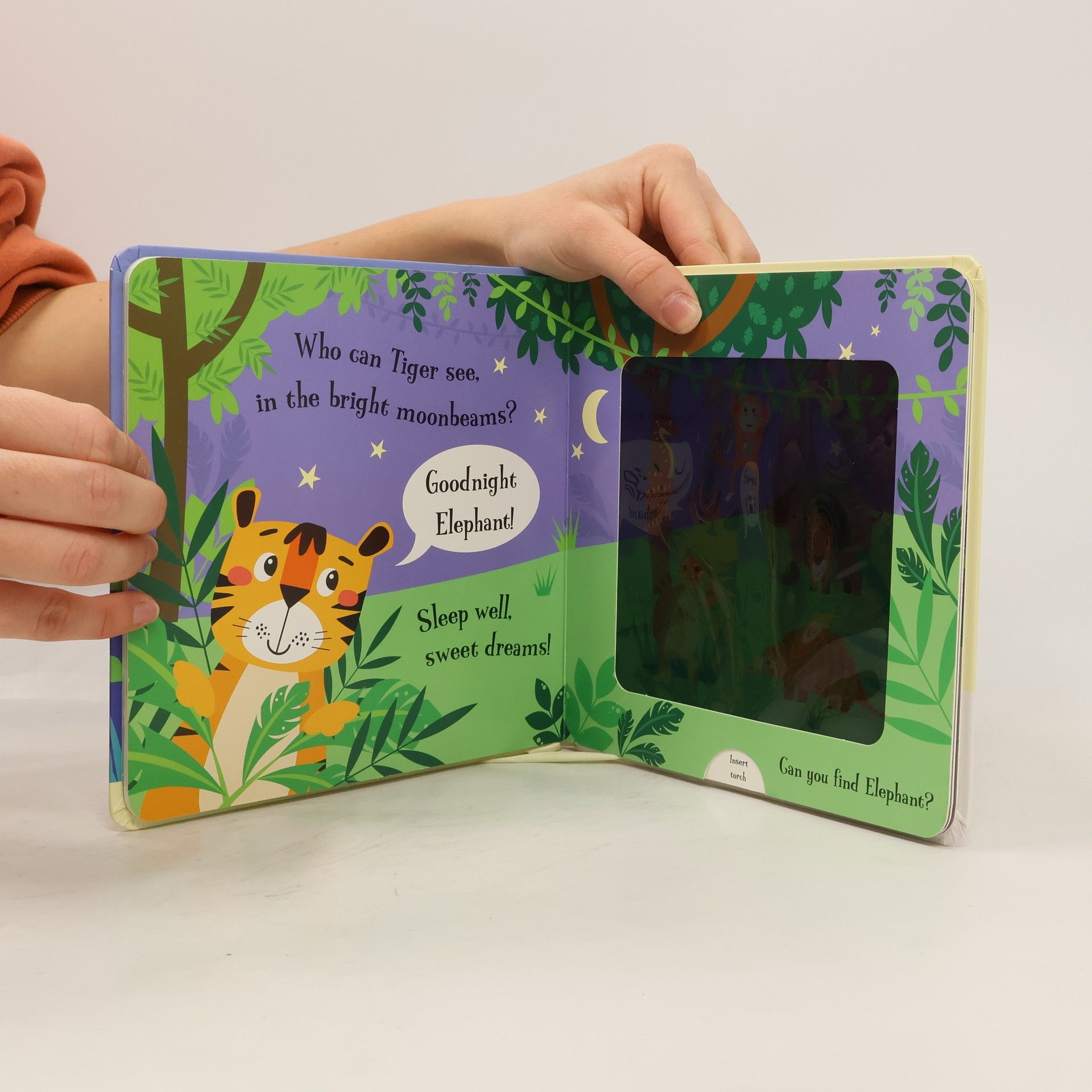 Tiger is ready for bed, but first he wants to say good night to all his animal friends. Young children will love to help Tiger find the animal friends in this interactive novelty board book. Insert the included 'magic torch' between the pages to find Tiger's friends in each night-time scene and watch children glow with delight.