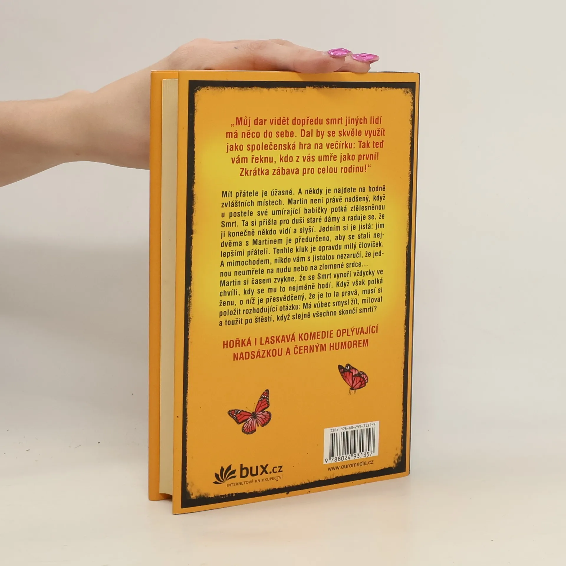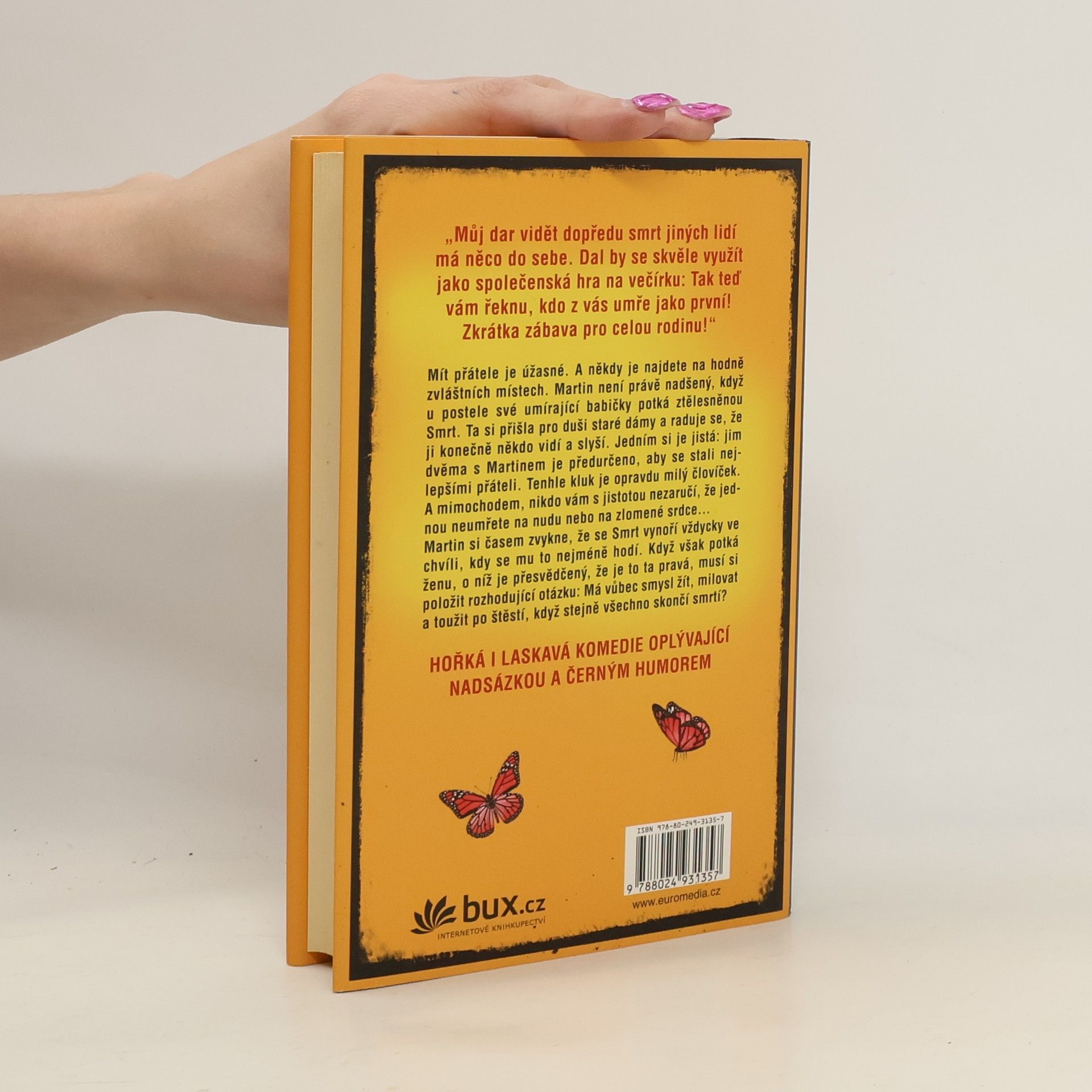Hlavní hrdina Martin není právě nadšený, když u postele své umírající babičky potká ztělesněnou Smrt. Ta si přišla pro duši staré dámy a raduje se, že ji konečně někdo vidí a slyší. Jedním si je jistá: Jim dvěma s Martinem je předurčeno, aby se stali nejlepšími přáteli. Tenhle kluk je opravdu milý človíček. A mimochodem, nikdo vám s jistotou nezaručí, že se nedá umřít na nudu nebo na zlomené srdce…Martin si časem zvykne, že se Smrt vynoří vždycky ve chvíli, kdy se mu to nejméně hodí. Když však potká ženu, o níž tuší, že je to ta pravá, musí si položit rozhodující otázku: Má vůbec smysl žít, milovat a toužit po štěstí, když stejně všechno skončí smrtí? Hořká i laskavá komedie oplývající nadsázkou a černým humorem