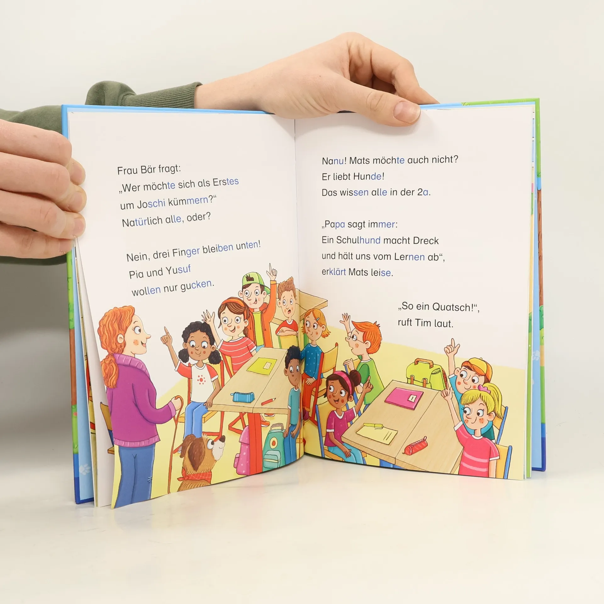 Mit Joschi macht Lesenlernen Spaß Die 2a ist so aufgeregt: Heute kommt ein neuer Mitschüler auf vier Pfoten! Joschi, zottelig, groß und superlieb, hilft der Klassenlehrerin als Schulhund im Unterricht – so macht Lernen richtig Spaß! Doch nicht alle sind vom Vierbeiner begeistert. Mats hält sich lieber zurück. Sein Papa arbeitet als Hausmeister auf der Schule und ist gegen den Hund. Ob Joschi seine Probezeit bestehen kann? Ein tierisch spannendes Lesevergnügen zum Selberlesen für Kinder ab 6 Jahren Die 2. Lesestufe zum Einfach-selbst-Lesen von Penguin JUNIOR: - Ideal zum ersten Lesenlernen ab der 1. Klasse - Große, gut erfassbare Erstleseschrift - Leichteres Lesen durch unterschiedlich eingefärbte Silben - Text in einfachen Hauptsätzen und Sinnschritten, unterteilt in mehrere Kapitel - Mit Verständnisfragen und Lesequiz Ausstattung: Mit farbigen Illustrationen
