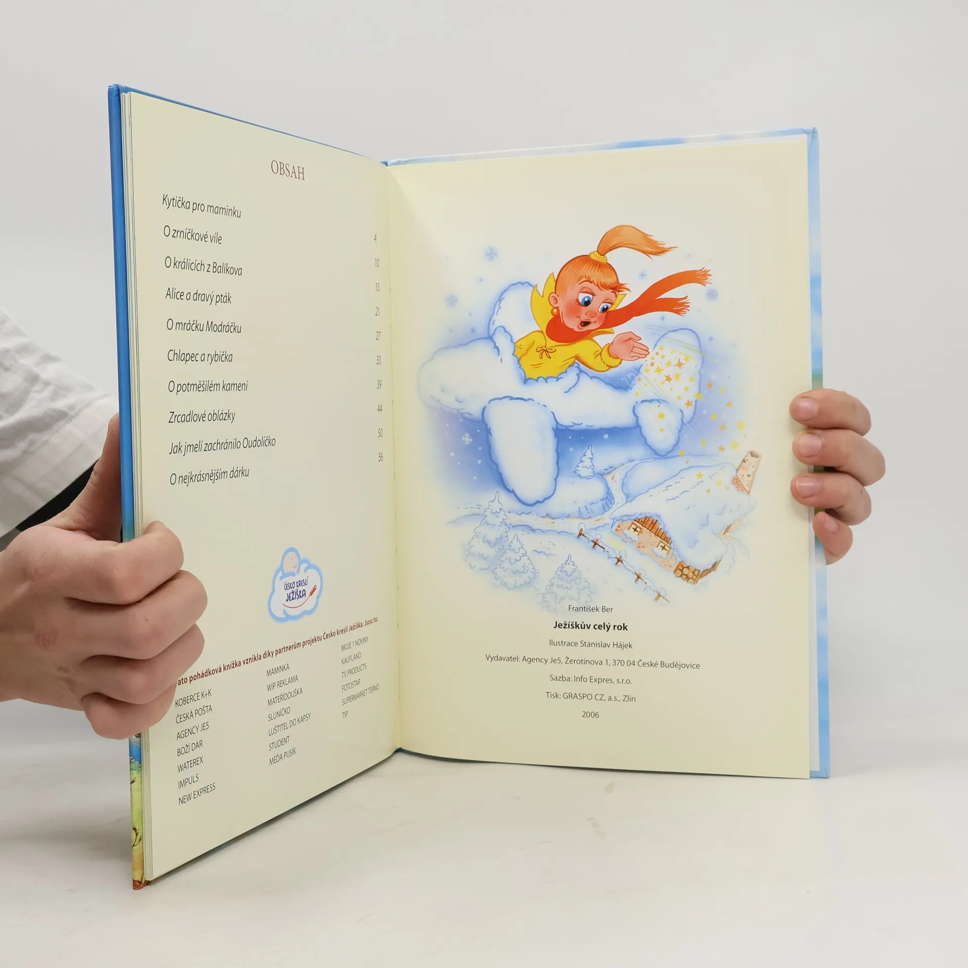 Pohádková knížka o příhodách bytosti, kterou mají všechny děti moc rády, o Ježíškovi. A jak by také ne, vždyť právě Ježíšek nosí dětem krásné dárky, vždyť on zařizuje to, aby Vánoce byly pro děti těmi nekrásnějšími svátky v roce. Knížka vás zavede do Ježíškova světa. Poznáte jeho přátele a pomocníky, dozvíte se, jak Ježíšek pomáhá dětem v jejich starostech a potížích i jak je odměňuje za správné činy. Také se dozvíte o některých tradicích, které si lidé za dlouhá staletí kolem Vánoc vytvořili. Knížka je to neobyčejná. To proto, že jste se na jejím vzniku podílely i vy, všechny děti v naší zemi. Vznikla totiž jako součást celonárodní soutěžní hry Česko kreslí Ježíška. V této soutěži jsme společně hledali, jak Ježíšek vlastně vypadá. A v tom je knížka o příhodách Ježíška neobyčejná podruhé. Vy si ji totiž sami můžete dotvořit. Samolepky jsou označeny stránkami v knížce, na kterých je obrázek Ježíška vynechán. No jistě, malíř ho tam nemohl namalovat, vždyť nevěděl, kterou podobu v soutěži vyberete. Takže je na vás, abyste podle označení nalepili obrázek Ježíška na tu správnou stránku a tím si knížku sami dozdobili.