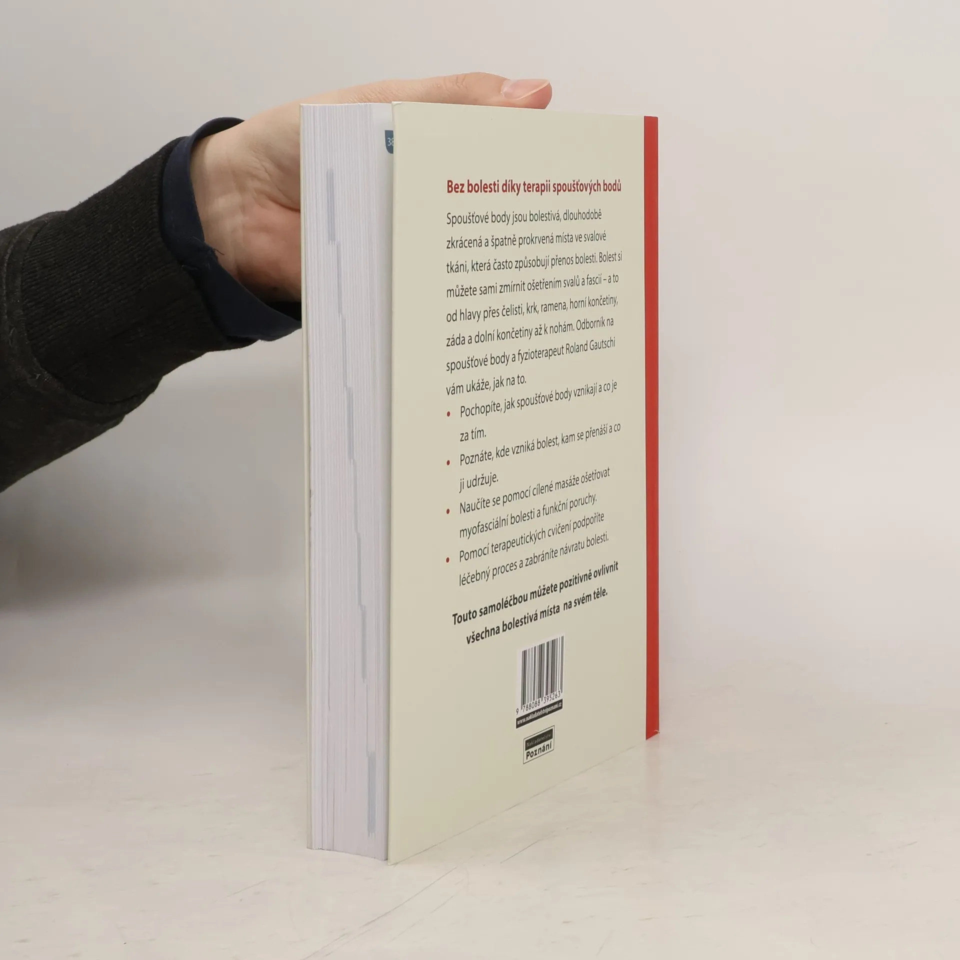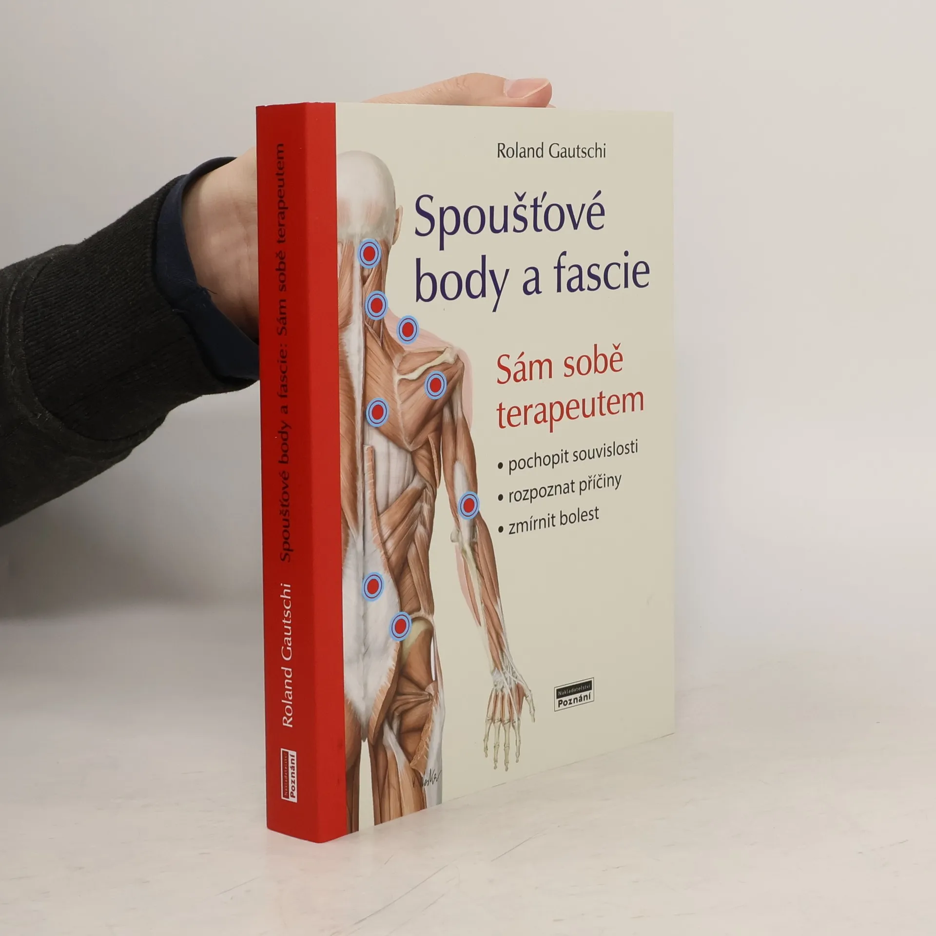 Bez bolesti díky terapii spoušťových bodů Spoušťové body jsou bolestivá, dlouhodobě zkrácená a špatně prokrvená místa ve svalové tkáni, která často způsobují přenos bolesti. Bolest si můžete sami zmírnit ošetřením svalů a fascií – a to od hlavy přes čelisti, krk, ramena, horní končetiny, záda a dolní končetiny až k nohám. Odborník na spoušťové body a fyzioterapeut Roland Gautschi vám ukáže, jak na to. Pochopíte, jak spoušťové body vznikají a co je za tím. Poznáte, kde vzniká bolest, kam se přenáší a co ji udržuje. Naučíte se pomocí cílené masáže ošetřovat myofasciální bolesti a funkční poruchy. Pomocí terapeutických cvičení podpoříte léčebný proces a zabráníte návratu bolesti. Touto samoléčbou můžete pozitivně ovlivnit všechna bolestivá místa na svém těle.