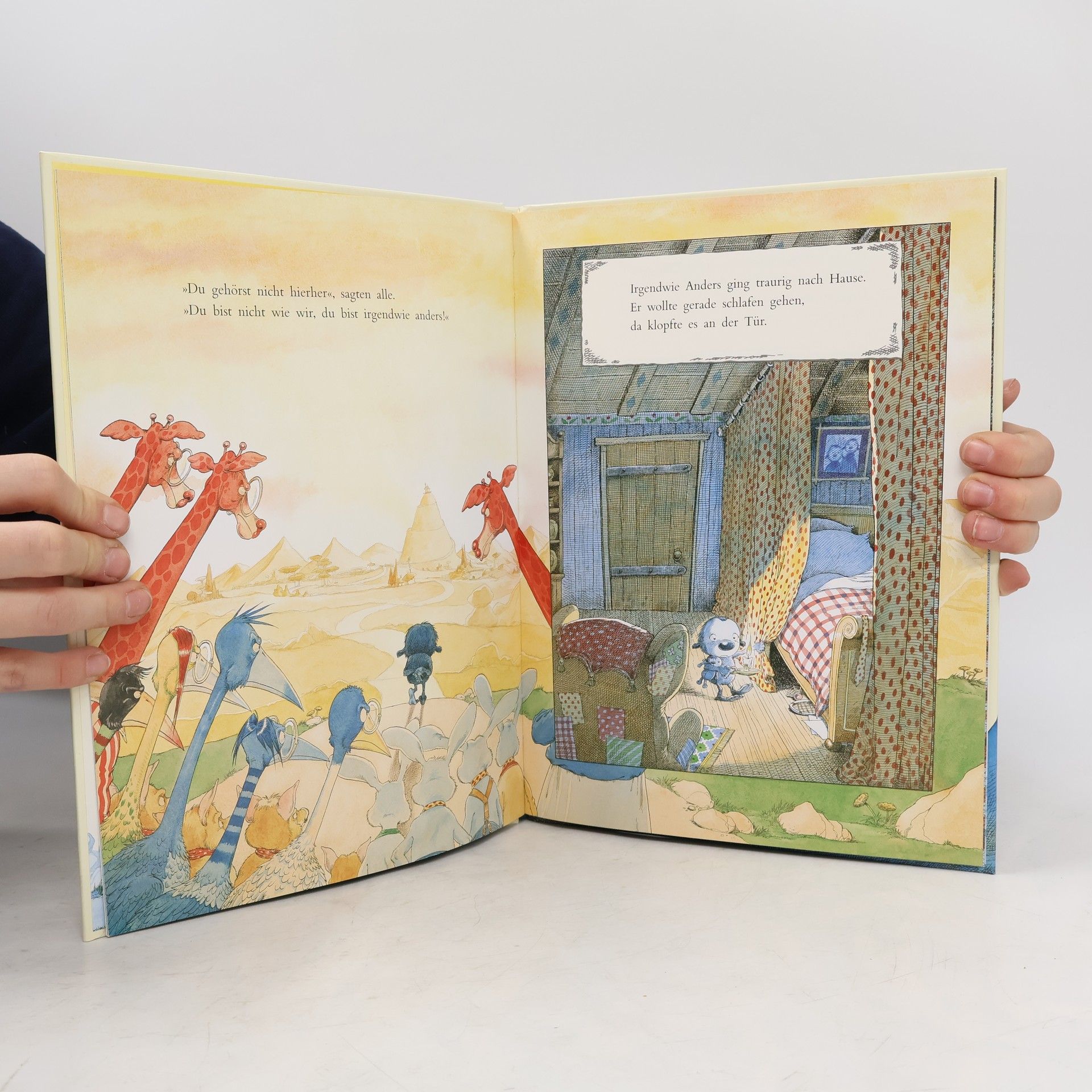 „Irgendwie Anders“ ist ein bezauberndes Bilderbuch von Kathryn Cave, illustriert von Chris Riddell, das die Geschichte eines kleinen Wesens erzählt, das sich von anderen unterscheidet und deshalb ausgeschlossen fühlt. Trotz seiner Bemühungen, sich anzupassen, bleibt Irgendwie Anders allein, bis eines Tages ein seltsames Etwas an seine Tür klopft und behauptet, genau wie er zu sein. Die Erzählung entwickelt sich zu einem warmherzigen Abenteuer über Freundschaft und Akzeptanz und vermittelt die Botschaft, dass jeder auf seine Art besonders ist. Das Buch hat den ersten internationalen UNESCO-Preis für Kinder- und Jugendliteratur im Dienst der Toleranz gewonnen und lehrt Kinder auf einfühlsame Weise die Bedeutung von Toleranz und Empathie. Es fördert Mitgefühl durch eine Geschichte, die den Wert von Freundschaft und Akzeptanz hervorhebt. Die faszinierenden Illustrationen von Chris Riddell machen die Geschichte lebendig und regen die Fantasie der Kinder an. Es eignet sich hervorragend als Lehrmittel für Eltern und Lehrkräfte, um Themen wie Individualität und Anderssein zu besprechen. Gelobt von Lesern für seine Fähigkeit, sowohl Kinder als auch Erwachsene zu berühren, ist es ein unverzichtbares Buch für jede Kinderbibliothek und ein effektives Werkzeug, um frühzeitig ein Verständnis für Vielfalt und Akzeptanz zu fördern. Auch als robustes Pappbilderbuch erhältlich und bei Antolin gelistet.