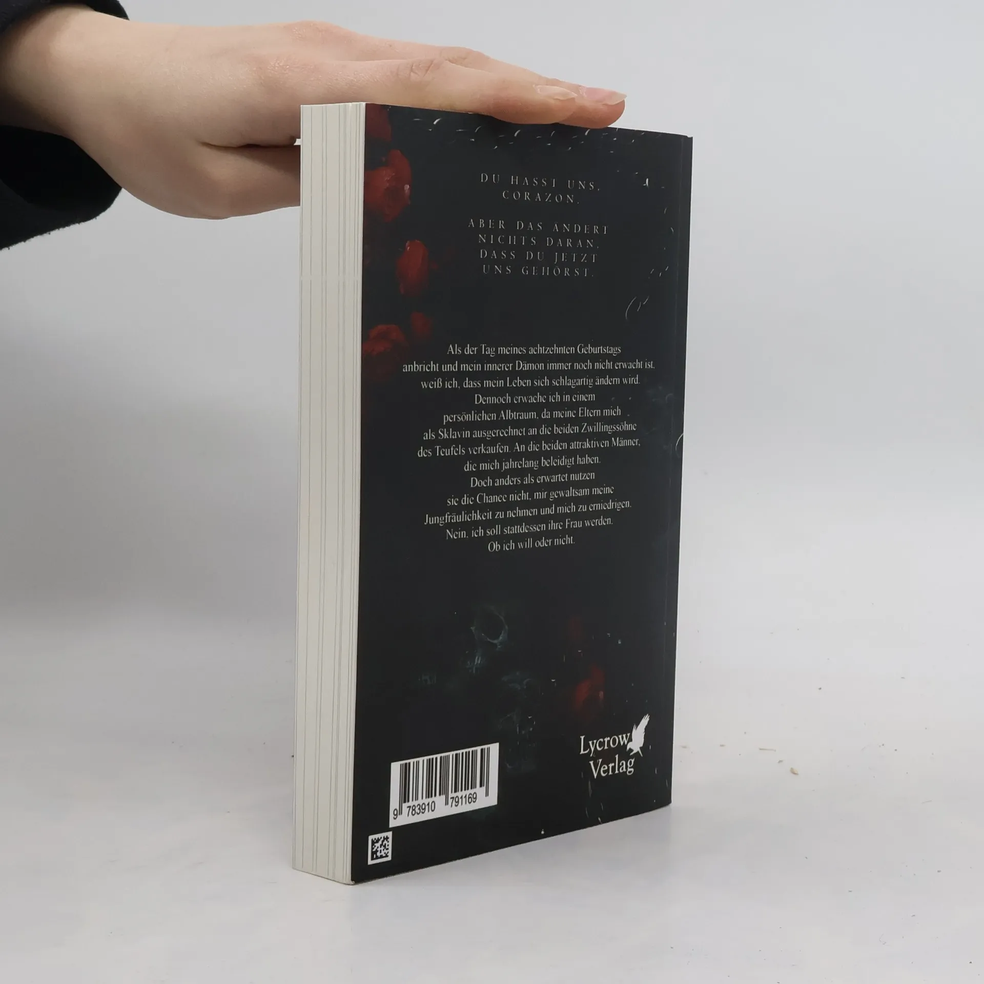 Du hasst uns, corazon.Aber das ändert nichts daran, dass du jetzt uns gehörst.Als der Tag meines achtzehnten Geburtstags anbricht und mein innerer Dämon immer noch nicht erwacht ist, weiß ich, dass mein Leben sich schlagartig ändern wird. Dennoch erwache ich in einem persönlichen Albtraum, da meine Eltern mich als Sklavin ausgerechnet an die beiden Zwillingssöhne des Teufels verkaufen. An die beiden attraktiven Männer, die mich jahrelang beleidigt haben. Doch anders als erwartet nutzen sie die Chance nicht, mir gewaltsam meine Jungfräulichkeit zu nehmen und mich zu erniedrigen. Nein, ich soll stattdessen ihre Frau werden. Ob ich will oder nicht.
