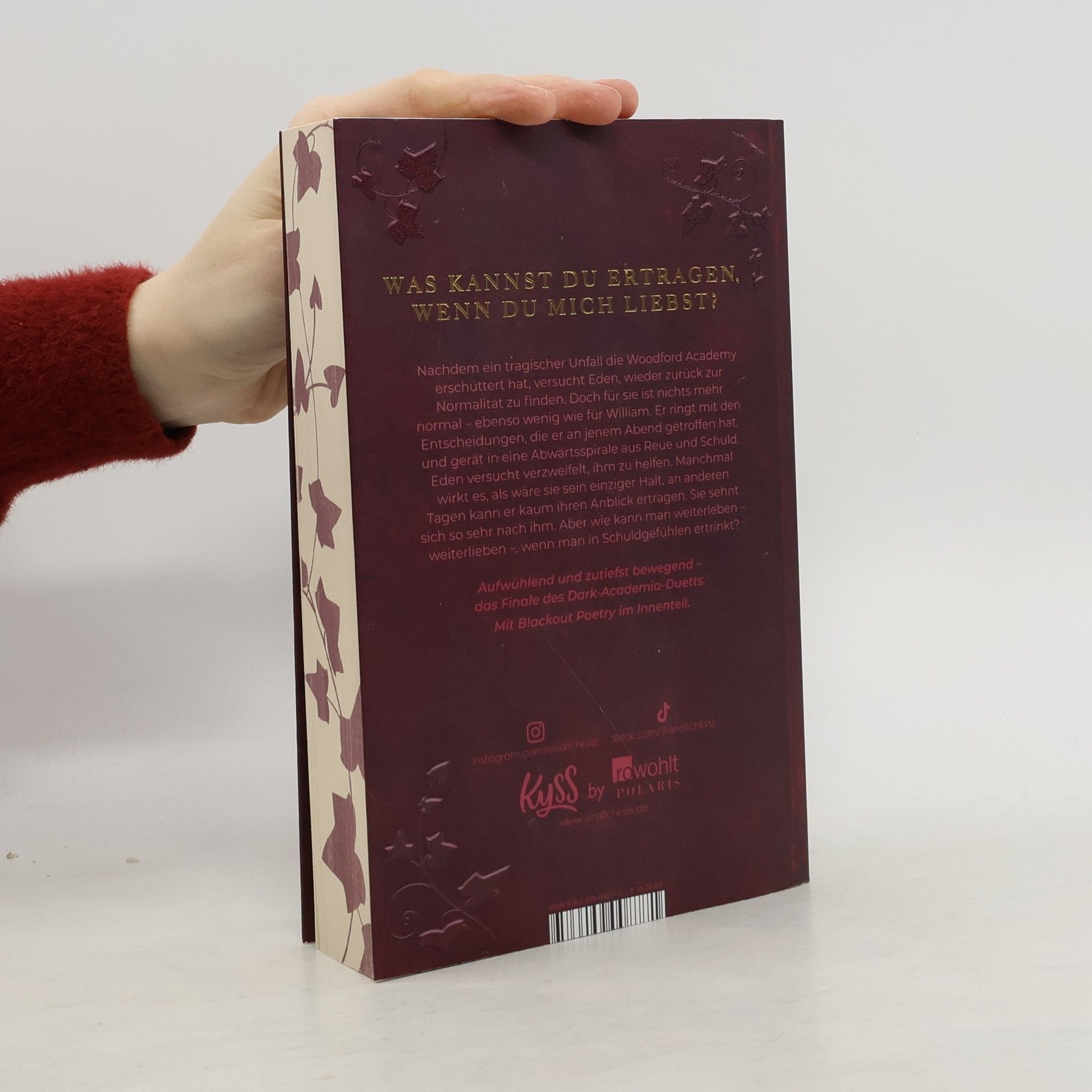 Das herzzerreißende Finale des Dark-Academia-Duetts. Bist du bereit? Nachdem ein tragischer Unfall die Woodford Academy erschüttert hat, versucht Eden, wieder zurück zur Normalität zu finden. Doch für sie ist nichts mehr normal – ebenso wenig wie für William. Er ringt mit den Entscheidungen, die er an jenem Abend getroffen hat, und gerät in eine Abwärtsspirale aus Reue und Schuld. Eden versucht verzweifelt, ihm zu helfen. Manchmal wirkt es, als wäre sie sein einziger Halt, an anderen Tagen kann er kaum ihren Anblick ertragen. Sie sehnt sich so sehr nach ihm. Aber wie kann man weiterleben – weiterlieben –, wenn man in Schuldgefühlen ertrinkt? Aufwühlend und zutiefst bewegend – die Fortsetzung des Spiegel-Bestsellers «Dark Ivy - Wenn ich falle». Mit Blackout Poetry im Innenteil.