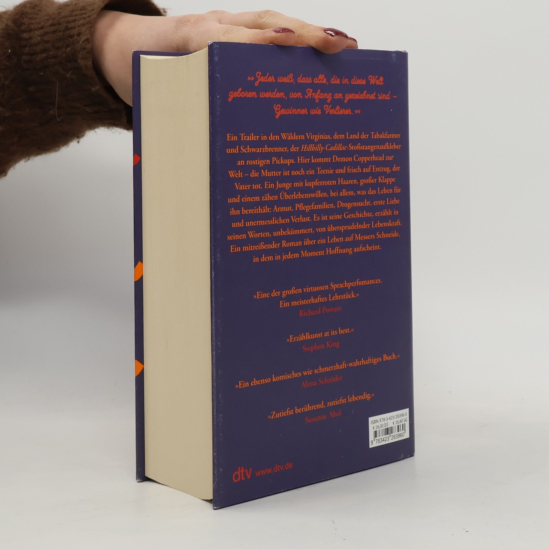 »Ebenso klug wie wortmächtig.« Denis Scheck #1 New York Times Readers' Choice: 100 Best Books of the 21st Century »Vielleicht der beste Roman des Jahres.« Washington Post Ein Triumph und ein großes Lesevergnügen: Der Millionenbestseller aus den USA, über ein Leben gegen alle Widerstände. Ein Trailer in den Wäldern Virginias, dem Land der Tabakfarmer und Schwarzbrenner, der Hillbilly-Cadillac-Stoßstangenaufkleber an rostigen Pickups. Hier kommt Demon Copperhead zur Welt – die Mutter ist noch ein Teenie und frisch auf Entzug, der Vater tot. Ein Junge mit kupferroten Haaren, großer Klappe und einem zähen Überlebenswillen, bei allem, was das Leben für ihn bereithält: Armut, Pflegefamilien, Drogensucht, erste Liebe und unermesslichen Verlust. Es ist seine Geschichte, erzählt in seinen Worten, unbekümmert, vorwitzig, von übersprudelnder Lebenskraft. Ein mitreißender Roman über ein Leben auf Messers Schneide, in dem in jedem Moment Hoffnung aufscheint. »Eine der großen virtuosen Sprachperfomances. Eine Meisterklasse.« Richard Powers »Erzählkunst at its best.« Stephen King »Selten habe ich so sehr mit einem Helden mitgefiebert, ihm die Daumen gedrückt, seinetwegen nachts wachgelegen.« Anika Decker