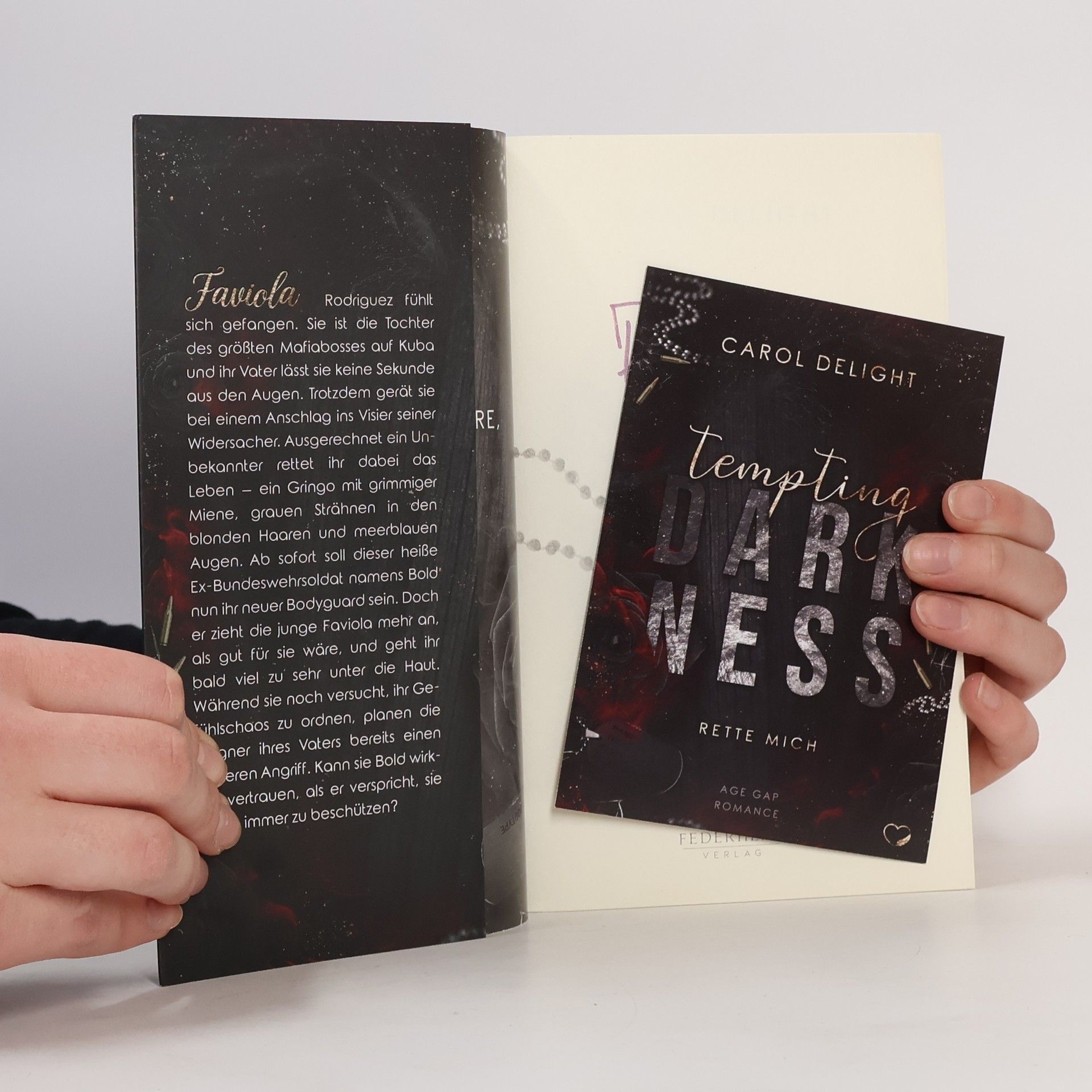 Sie ist die Tochter eines Mafiabosses. Er ihr neuer Bodyguard. Doch kann sie ihm wirklich vertrauen? Faviola Rodriguez fühlt sich gefangen. Sie ist die Tochter des größten Mafiabosses auf Kuba und ihr Vater lässt sie keine Sekunde aus den Augen. Trotzdem gerät sie bei einem Anschlag ins Visier seiner Widersacher. Ausgerechnet ein Unbekannter rettet ihr dabei das Leben – ein Gringo mit grimmiger Miene, grauen Strähnen in den blonden Haaren und meerblauen Augen. Ab sofort soll dieser heiße Ex-Bundeswehrsoldat namens Bold nun ihr neuer Bodyguard sein. Doch er zieht die junge Faviola mehr an, als gut für sie wäre, und geht ihr bald viel zu sehr unter die Haut. Während sie noch versucht, ihr Gefühlschaos zu ordnen, planen die Gegner ihres Vaters bereits einen weiteren Angriff. Kann sie Bold wirklich vertrauen, als er verspricht, sie immer zu beschützen? Tauche ab in die actiongeladene Age-Gap-Romance mit Mafia-Elementen und Suchtfaktor von Carol Delight.