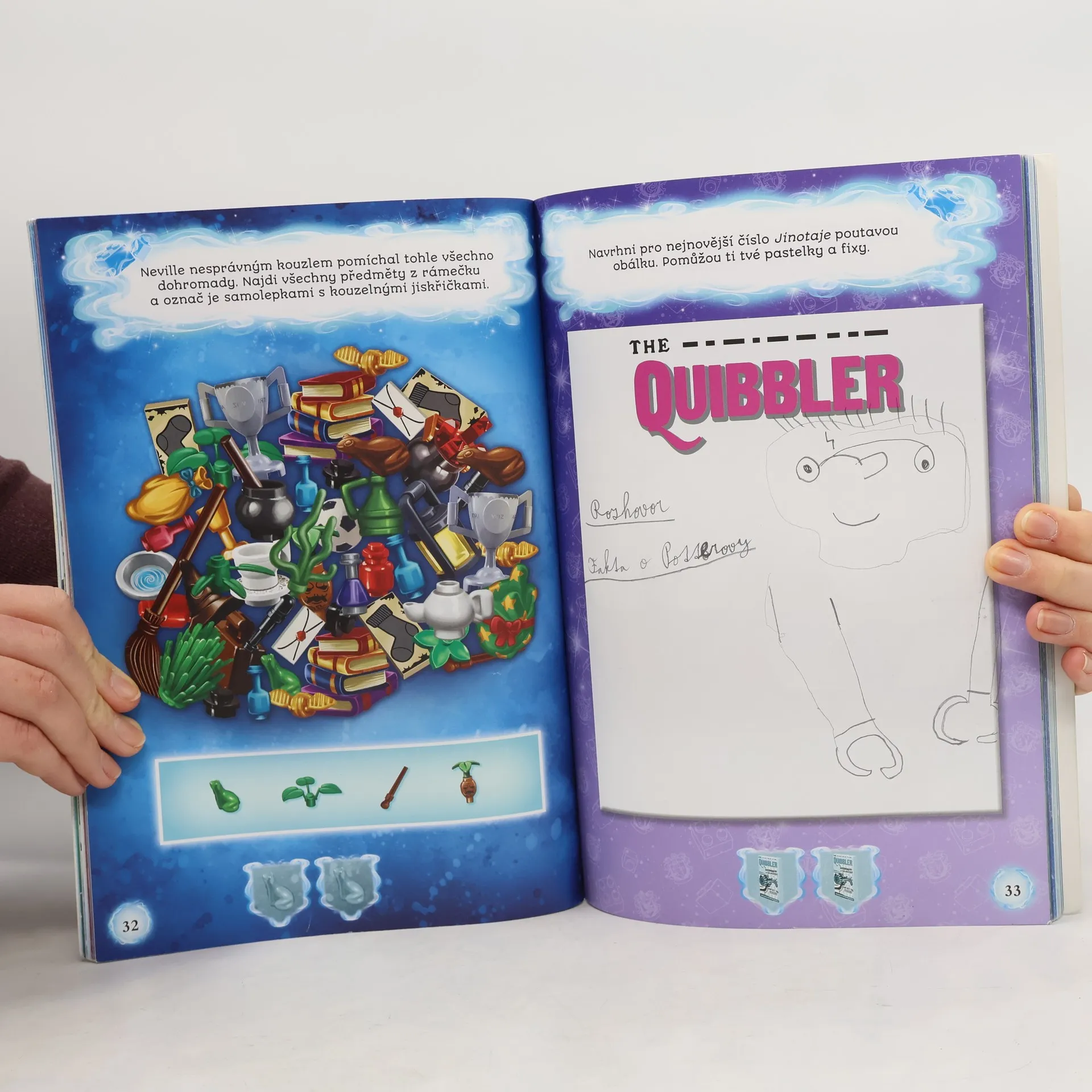 V kouzelnickém světě se neustále něco děje! Přidej se k Harrymu Potterovi a jeho nejlepším kamarádům Ronovi a Hermioně a poper se s nimi v této zábavou nabité knížce s aktivitami, hádankami, bludišti, kreslením a vybarvováním. S tisíc a jednou samolepkou, které ti pomohou s řešeními, ale ozdobí i tvé vlastní kouzelnické výtvory, se každá neplecha určitě podaří!