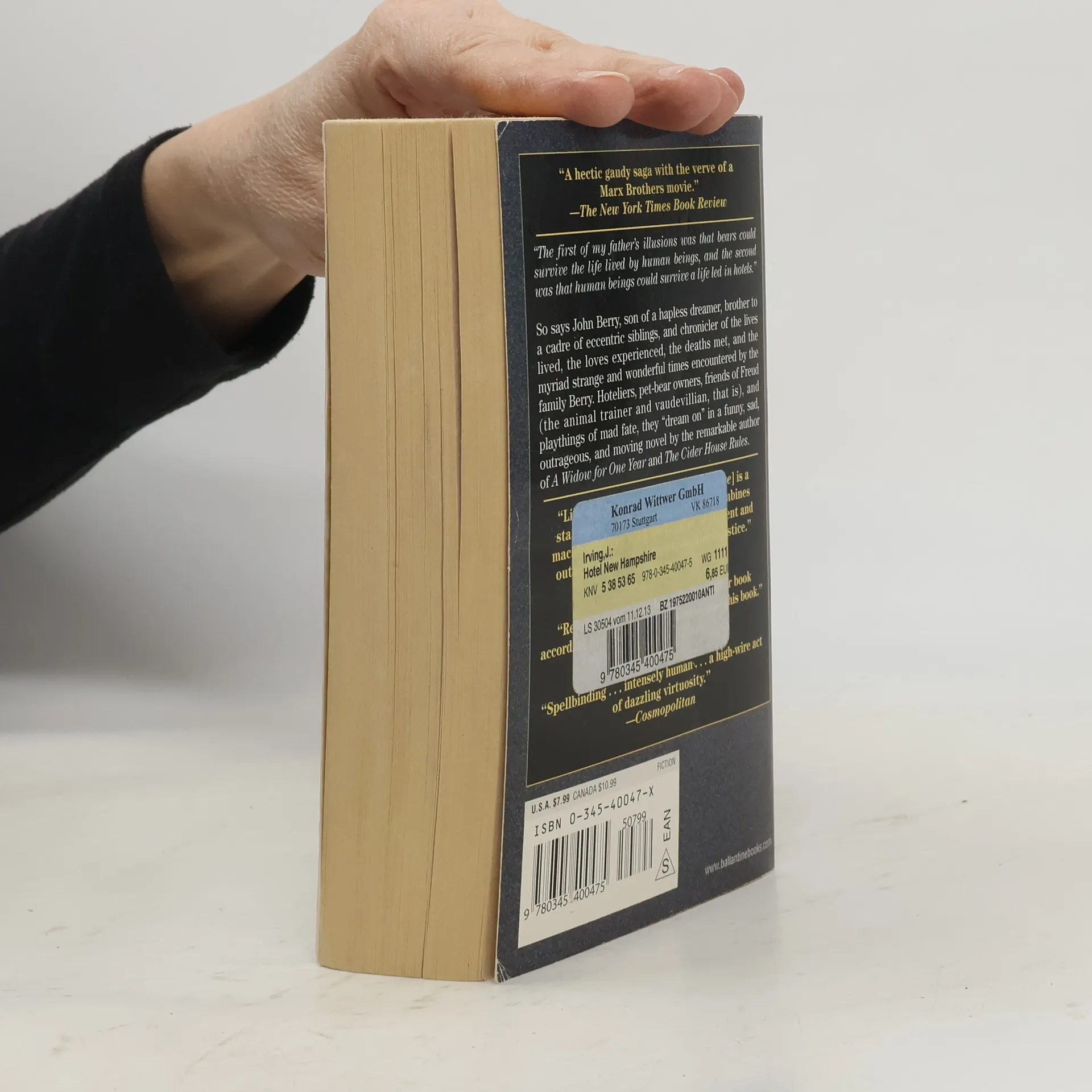 "The first of my father's illusions was that bears could survive the life lived by human beings, and the second was that human beings could survive a life led in hotels." So says John Berry, son of a hapless dreamer, brother to a cadre of eccentric siblings, and chronicler of the lives lived, the loves experienced, the deaths met, and the myriad strange and wonderful times encountered by the family Berry. Hoteliers, pet-bear owners, friends of Freud (the animal trainer and vaudevillian, that is), and playthings of mad fate, they "dream on" in a funny, sad, outrageous, and moving novel by the remarkable author of A Son of the Circus and A Prayer for Owen Meany. "Like Garp, [THE HOTEL NEW HAMPSHIRE] is a startlingly original family saga that combines macabre humor with Dickensian sentiment and outrage at cruelty, dogmatism and injustice." --Time "Rejoice! John Irving has written another book according to your world....You must read this book." --Los Angeles Times "Spellbinding...Intensely human...A high-wire act of dazzling virtuosity." --Cosmopolitan