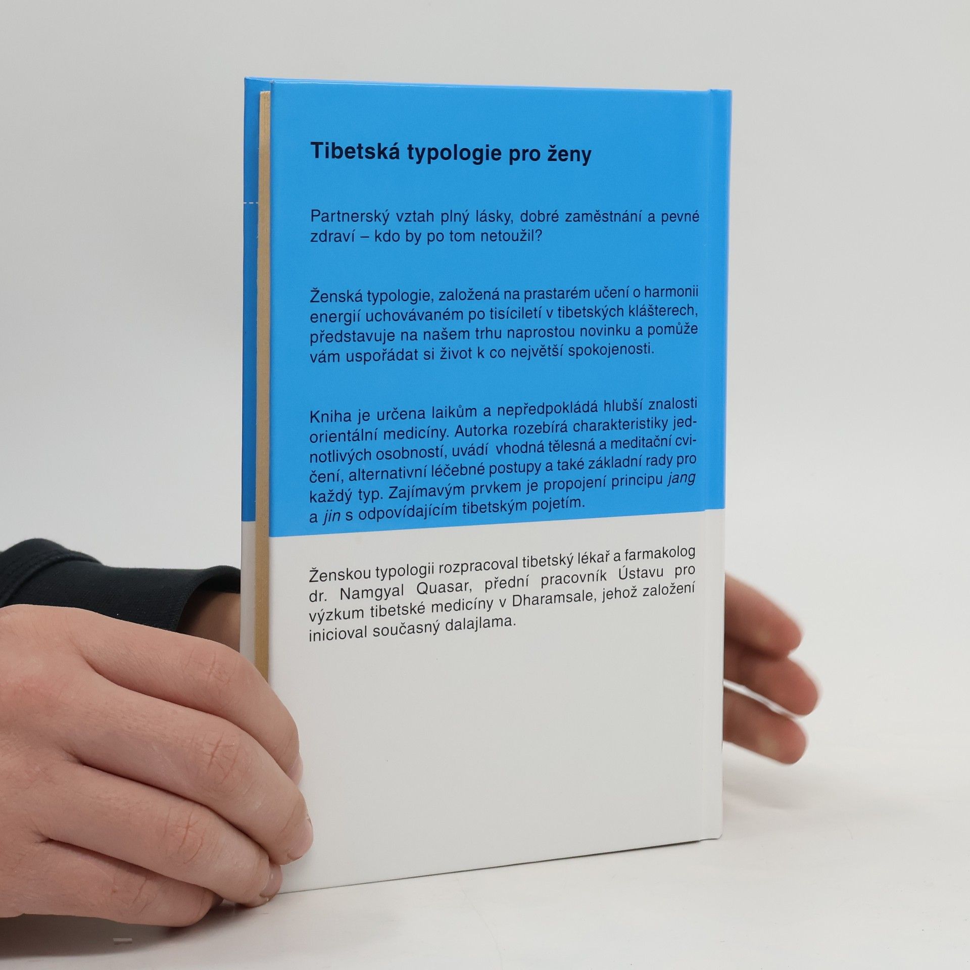 Autorka rozebírá charakteristiky jednotlivých osobností, uvádí vhodná tělesná a meditační cvičení, alternativní léčebné postupy a také základní rady pro každý typ. Zajímavým prvkem je propojení principu jang a jin s odpovídajícím tibetským pojetím. Vydání první.