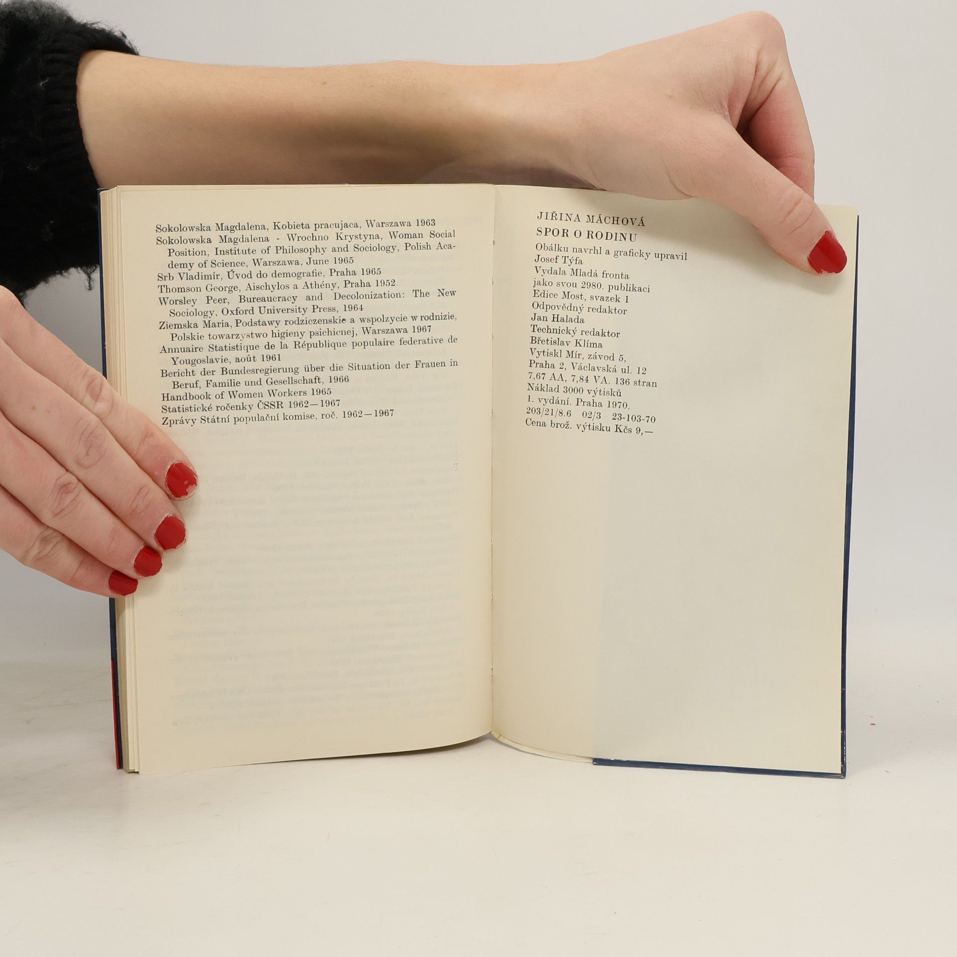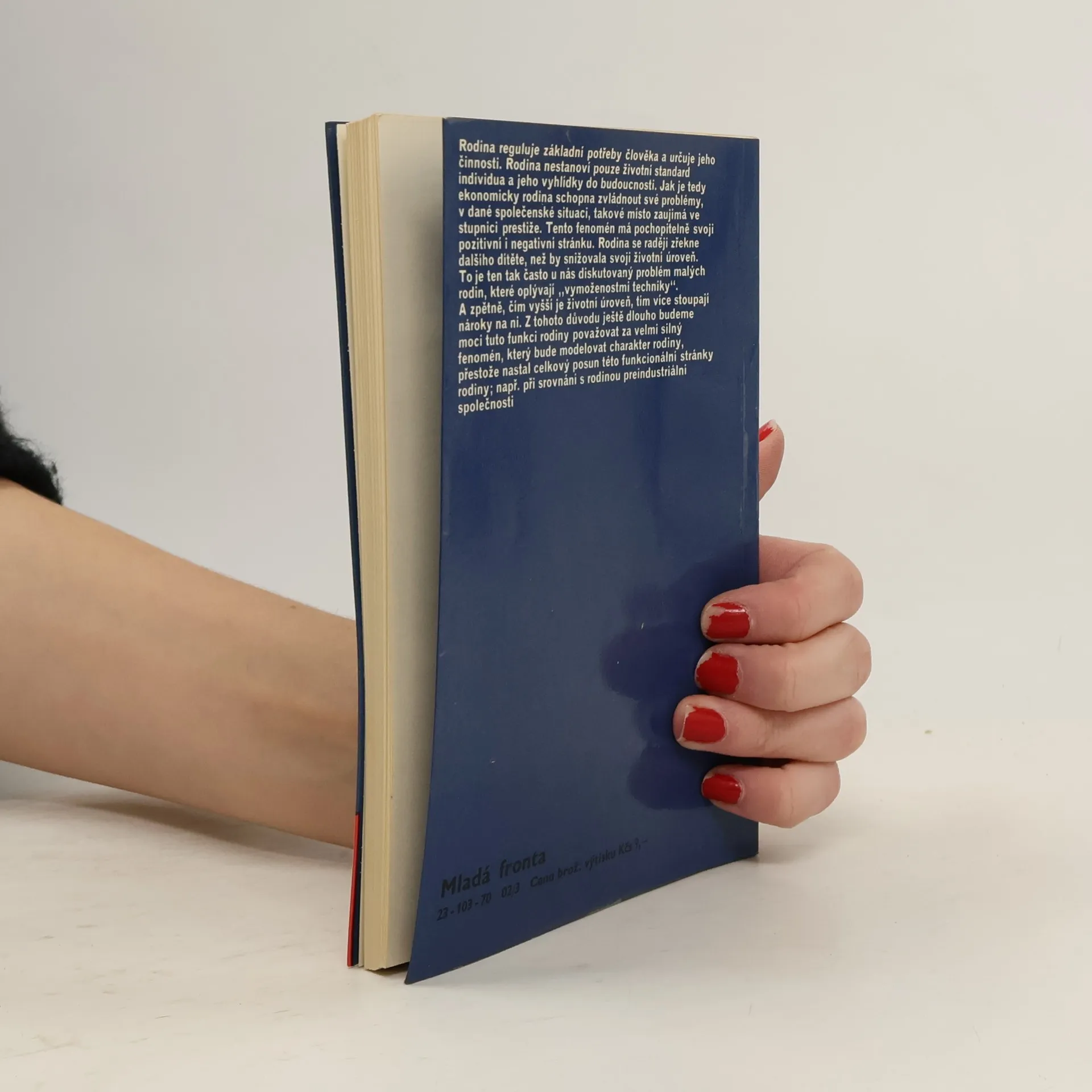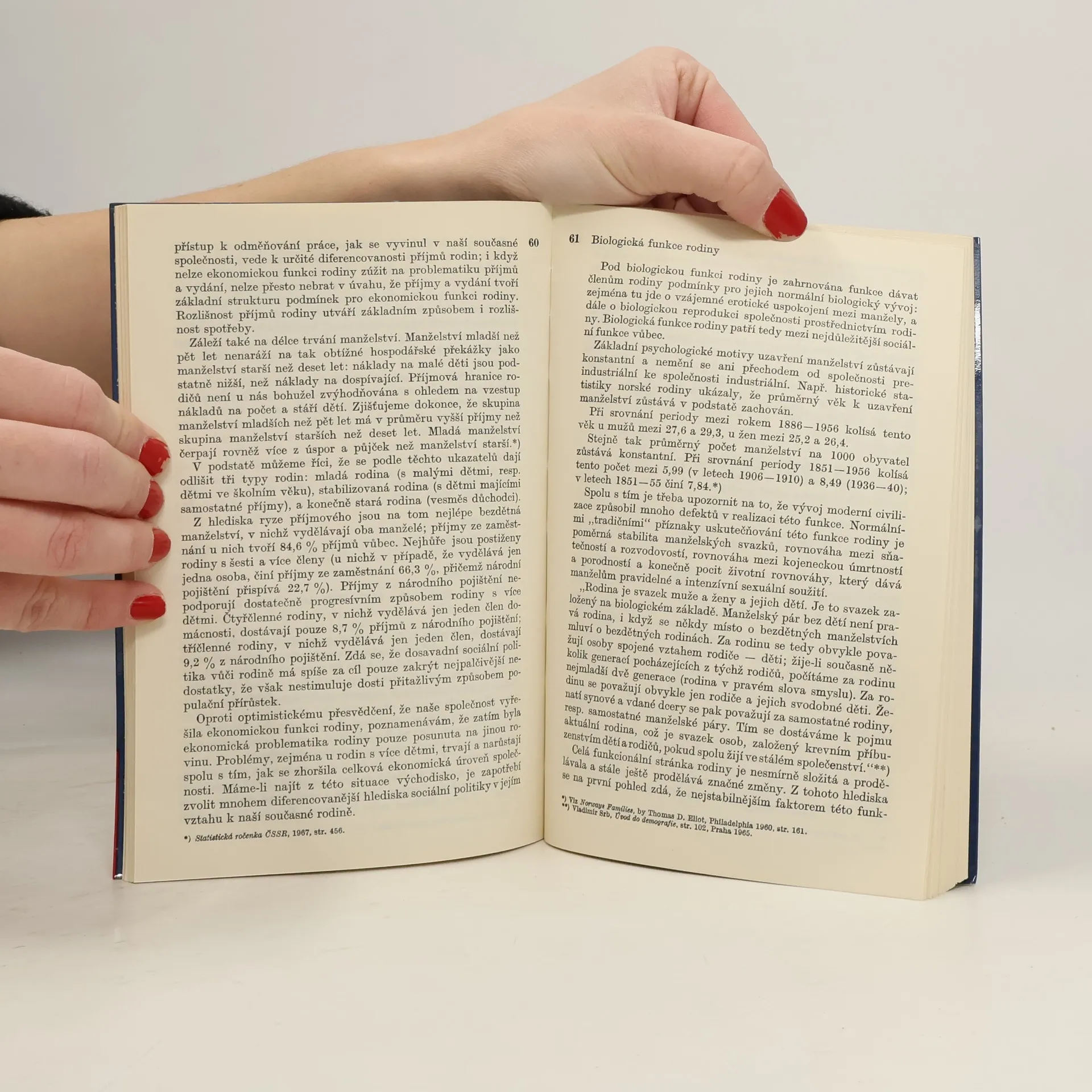 Obecné sociologické problémy rodiny jsou traktovány tak, aby vynikla hlediska, z nichž je rodinný svazek posuzován, a aby byly vyznačeny diskutabilní i neoddiskutovatelné faktory a funkce tohoto svazku. Autorka nastiňuje teorii nukleární rodiny, historický vývoj, rozbor struktury rodinných funkcía analýzu poměrů v současné nestabilní rodině, jejíž nevyrovnanost považuje za nutný moment změny. Celkově však rodinu pokládá za elementární spojení, "bez něhož by se rozpadla i nejdokonalejší společnost na nesouvislé atomy". Čerpá z rozsáhlé odborné literatury a cituje mnoho statistických údajů.