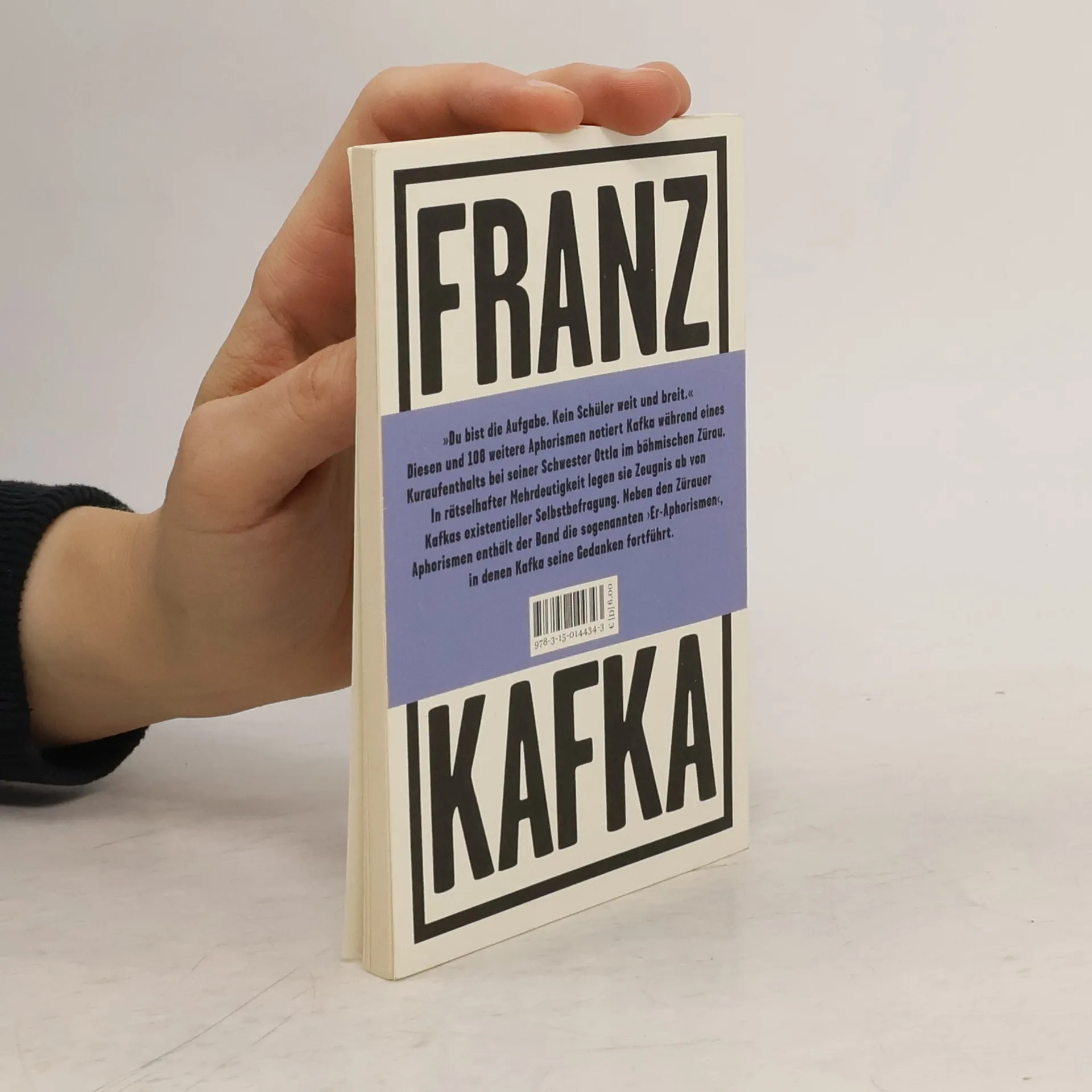 »Du bist die Aufgabe. Kein Schüler weit und breit.« – Diesen und 108 weitere Aphorismen notiert Kafka während eines Kuraufenthalts bei seiner Schwester Ottla im böhmischen Zürau. In rätselhafter Mehrdeutigkeit legen sie Zeugnis ab von Kafkas existentieller Selbstbefragung. Neben den Zürauer Aphorismen enthält der Band die sogenannten ›Er-Aphorismen‹, in denen Kafka seine Gedanken fortführt.