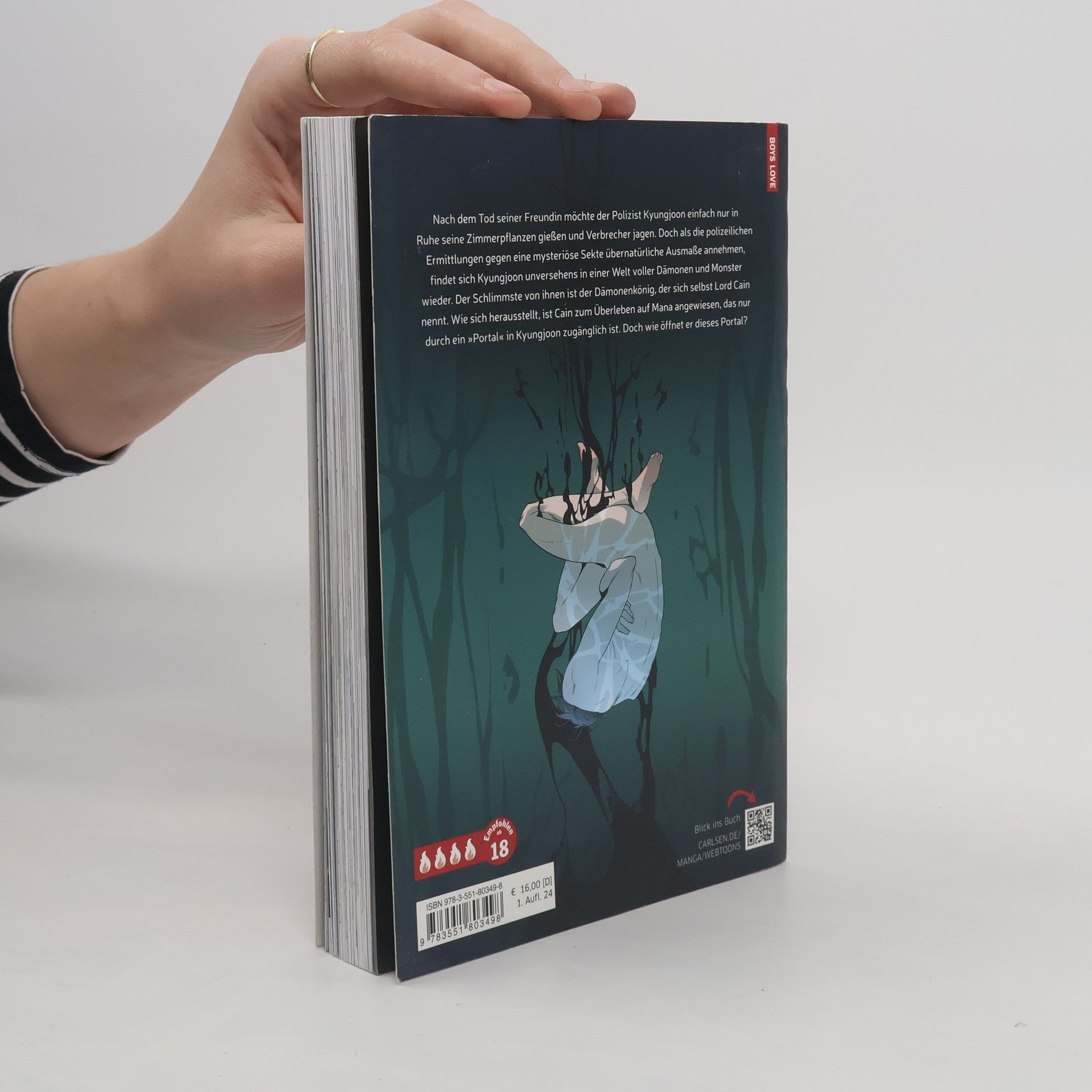 Eine Fusion aus dämonisch guter Action und heißer Boys Love! Nachdem seine Freundin gestorben ist, möchte der Polizist Kyungjoon einfach nur in Ruhe seine Zimmerpflanzen gießen und Verbrecher jagen. Doch als die polizeilichen Ermittlungen gegen eine mysteriöse Sekte übernatürliche Ausmaße annehmen, findet sich Kyungjoon unversehens in einer Welt voller Dämonen, Sukkuben und Monster wieder. Der schlimmste von ihnen ist der Dämonenkönig, der sich selbst Lord Cain nennt. Wie sich herausstellt, ist Cain zum Überleben auf Mana angewiesen, das nur durch eine "Tür" in Kyungjoon zugänglich ist. Doch wie öffnet er diese Tür? Ein packender Action-Boys-Love-Titel, perfekt für Fans von MADK! Mit spannendem Extra in der 1. Auflage!