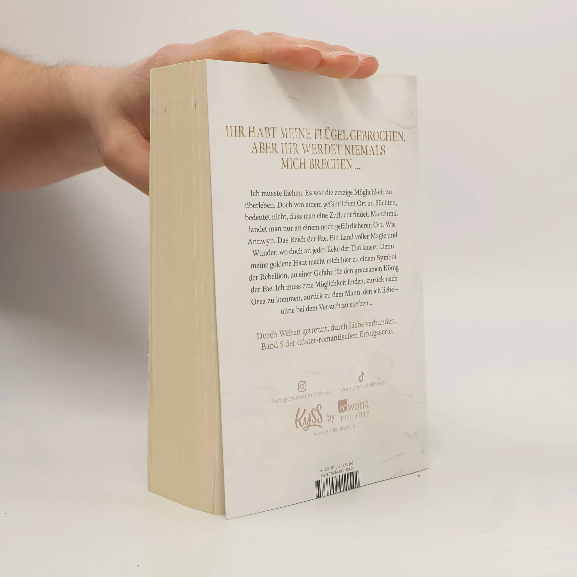 Ihr habt meine Flügel gebrochen. Aber ihr werdet niemals mich brechen … Ich musste fliehen. Es war die einzige Möglichkeit zu überleben. Doch von einem gefährlichen Ort zu flüchten, bedeutet nicht, dass man eine Zuflucht findet. Manchmal landet man nur an einem noch gefährlicheren Ort. Wie Annwyn. Das Reich der Fae. Ein Land voller Magie und Wunder, wo doch an jeder Ecke der Tod lauert. Denn meine goldene Haut macht mich hier zu einem Symbol der Rebellion, zu einer Gefahr für den grausamen König der Fae. Ich muss eine Möglichkeit finden, zurück nach Orea zu kommen, zurück zu dem Mann, den ich liebe – ohne bei dem Versuch zu sterben … Durch Welten getrennt, durch Liebe verbunden. Band 5 der düster-romantischen Erfolgsserie.