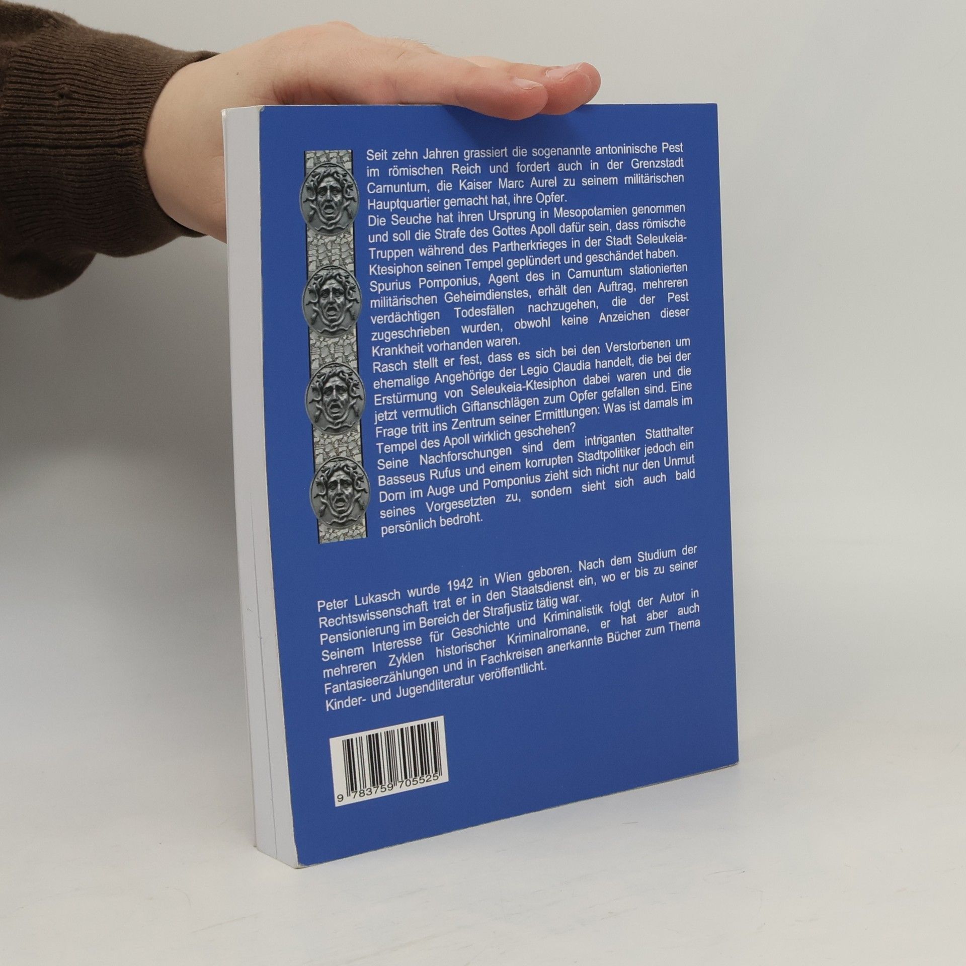 Seit zehn Jahren grassiert die sogenannte antoninische Pest im römischen Reich und fordert auch in der Grenzstadt Carnuntum, die Kaiser Marc Aurel zu seinem militärischen Hauptquartier gemacht hat, ihre Opfer. Die Seuche hat ihren Ursprung in Mesopotamien genommen und soll die Strafe des Gottes Apoll dafür sein, dass römische Truppen während des Partherkrieges in der Stadt Seleukeia-Ktesiphon seinen Tempel geplündert und geschändet haben. Spurius Pomponius, Agent des in Carnuntum stationierten militärischen Geheimdienstes, erhält den Auftrag, mehreren verdächtigen Todesfällen nachzugehen, die der Pest zugeschrieben wurden, obwohl keine Anzeichen dieser Krankheit vorhanden waren. Rasch stellt er fest, dass es sich bei den Verstorbenen um ehemalige Angehörige der Legio Claudia handelt, die bei der Erstürmung von Seleukeia-Ktesiphon dabei waren und die jetzt vermutlich Giftanschlägen zum Opfer gefallen sind. Eine Frage tritt ins Zentrum seiner Ermittlungen: Was ist damals im Tempel des Apoll wirklich geschehen? Seine Nachforschungen sind dem intriganten Statthalter Basseus Rufus und einem korrupten Stadtpolitiker jedoch ein Dorn im Auge und Pomponius zieht sich nicht nur den Unmut seines Vorgesetzten zu, sondern sieht sich auch bald persönlich bedroht.