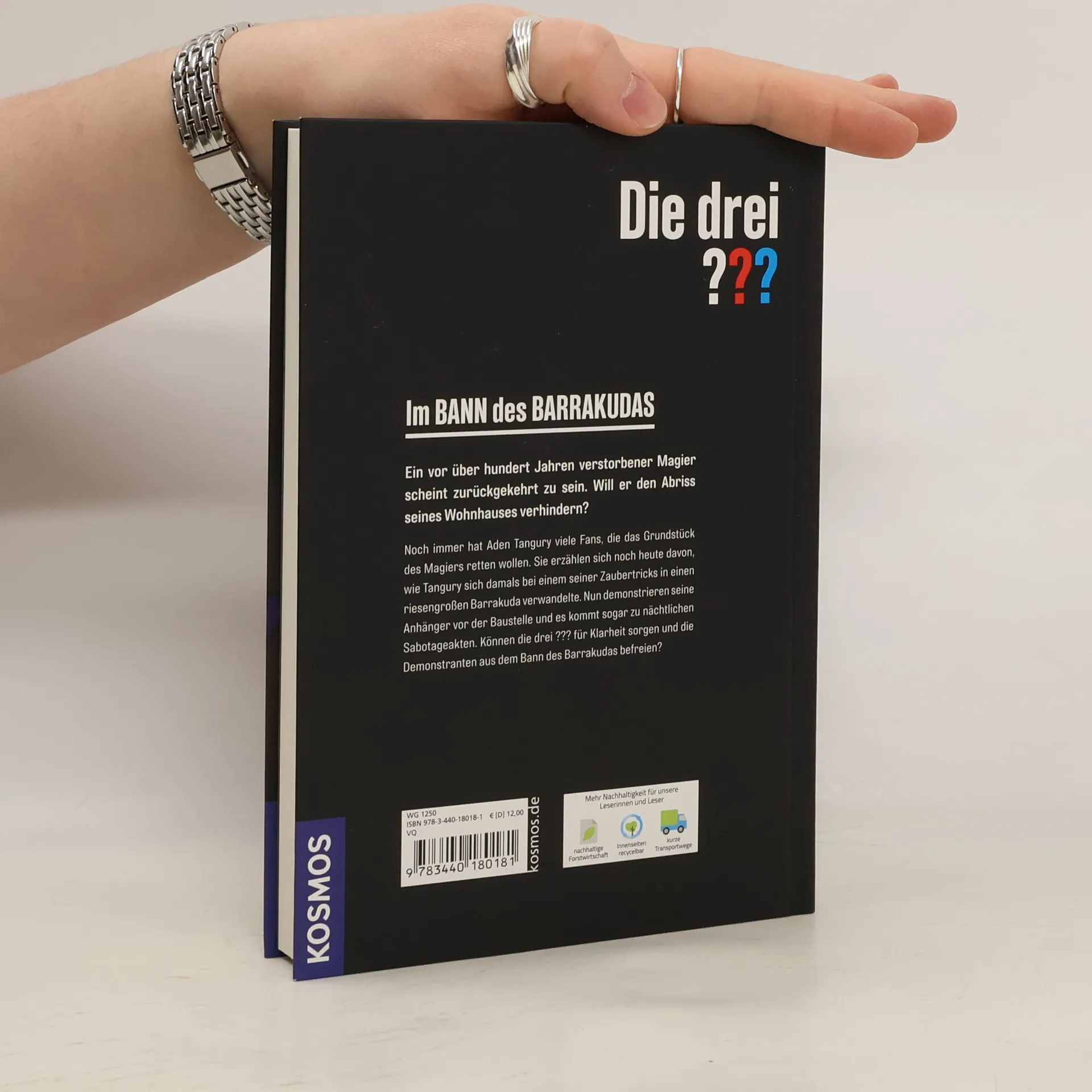 Dicke Luft in Rocky Beach! Auf dem Gelände des verstorbenen Magiers Aden Tangury soll ein Einkaufs- und Begegnungszentrum gebaut werden. Seit einiger Zeit versammeln sich seine Fans, um das Haus vor dem Abriss zu schützen. Doch es sind nicht nur die Proteste, die die Bauarbeiten verzögern. Die drei ??? haben einen neuen Fall und schon bald eine heiße Spur: Was haben die Vorkommnisse mit den legendären Shows des Magiers zu tun? Tangury soll sich damals in einen riesigen Barrakuda verwandelt haben. Mit Witz und Verstand finden Justus, Peter und Bob heraus, was hier gespielt wird.