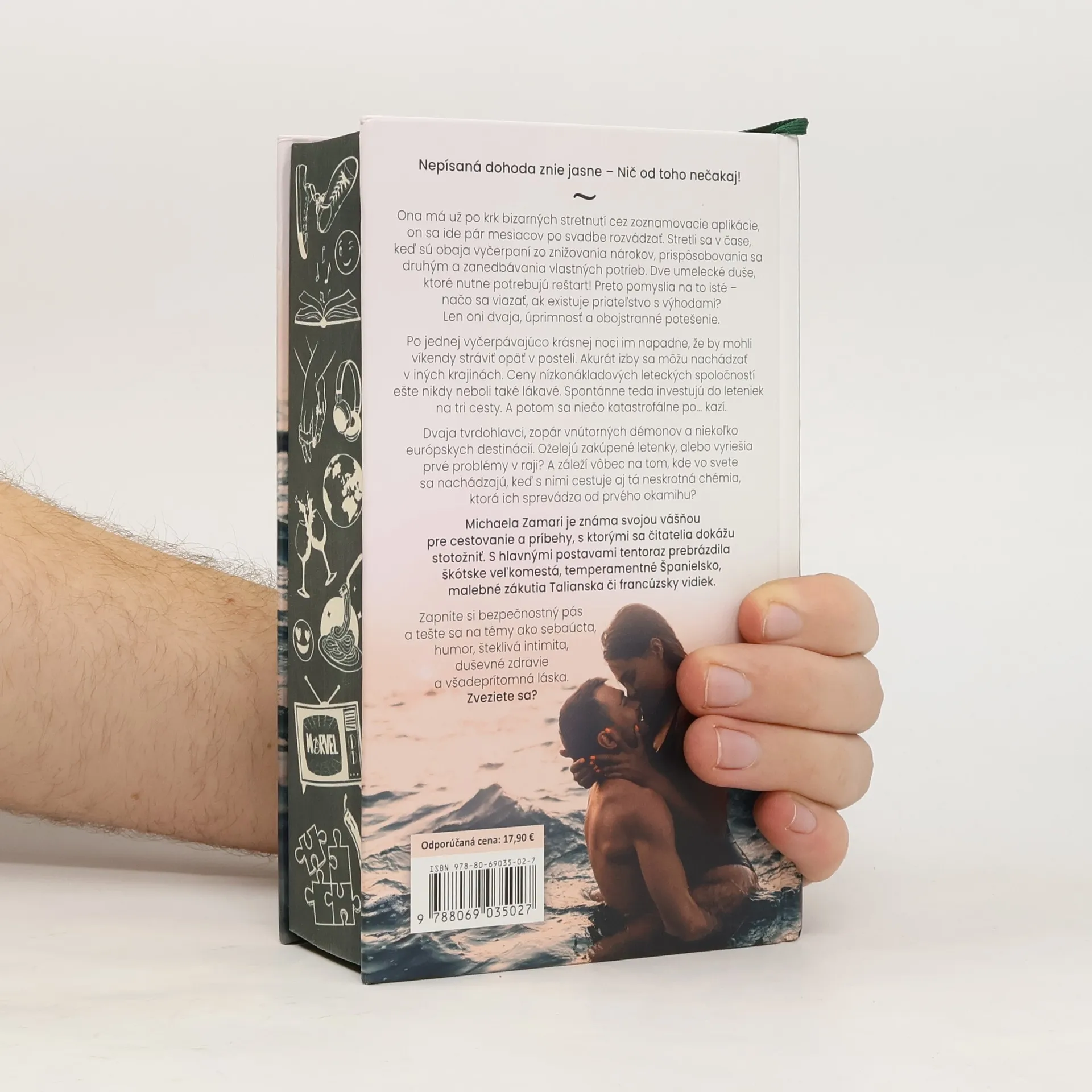 Nepísaná dohoda znie jasne – Nič od toho nečakaj! Ona má už po krk bizarných stretnutí cez zoznamovacie aplikácie, on sa ide pár mesiacov po svadbe rozvádzať. Stretli sa v čase, keď sú obaja vyčerpaní zo znižovania nárokov, prispôsobovania sa druhým a zanedbávania vlastných potrieb. Dve umelecké duše, ktoré nutne potrebujú reštart! Preto pomyslia na to isté – načo sa viazať, ak existuje priateľstvo s výhodami? Len oni dvaja, úprimnosť a obojstranné potešenie. Po jednej vyčerpávajúco krásnej noci im napadne, že by mohli víkendy stráviť opäť v posteli. Akurát izby sa môžu nachádzať v iných krajinách. Ceny nízkonákladových leteckých spoločností ešte nikdy neboli také lákavé. Spontánne teda investujú do leteniek na tri cesty. A potom sa niečo katastrofálne po... kazí. Dvaja tvrdohlavci, zopár vnútorných démonov a niekoľko európskych destinácií. Oželejú zakúpené letenky, alebo vyriešia prvé problémy v raji? A záleží vôbec na tom, kde vo svete sa nachádzajú, keď s nimi cestuje aj tá neskrotná chémia, ktorá ich sprevádza od prvého okamihu? Michaela Zamari je známa svojou vášňou pre cestovanie a príbehy, s ktorými sa čitatelia dokážu stotožniť. S hlavnými postavami tentoraz prebrázdila škótske veľkomestá, temperamentné Španielsko, malebné zákutia Talianska či francúzsky vidiek. Zapnite si bezpečnostný pás a tešte sa na témy ako sebaúcta, humor, šteklivá intimita, duševné zdravie a všadeprítomná láska. Zveziete sa?