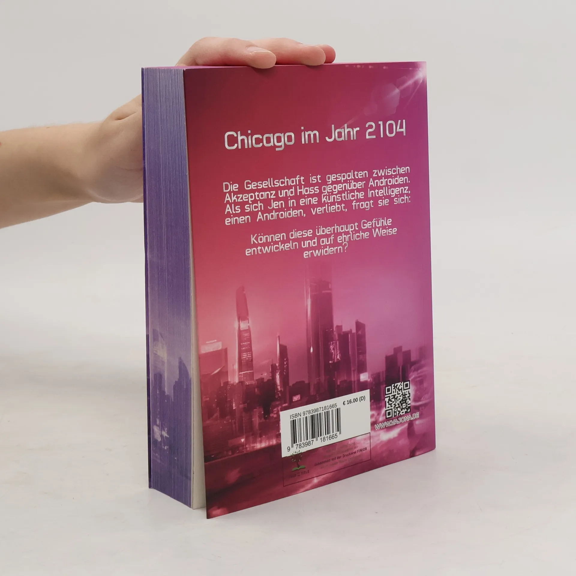 Mit farbigem Buchschnitt in der gedruckten Erstauflage Chicago im Jahr 2104. Die Gesellschaft ist gespalten zwischen Akzeptanz und Hass gegenüber Androiden. Als sich Jen in eine künstliche Intelligenz, einen Androiden, verliebt, fragt sie sich: Können diese überhaupt Gefühle entwickeln und auf ehrliche Weise erwidern?