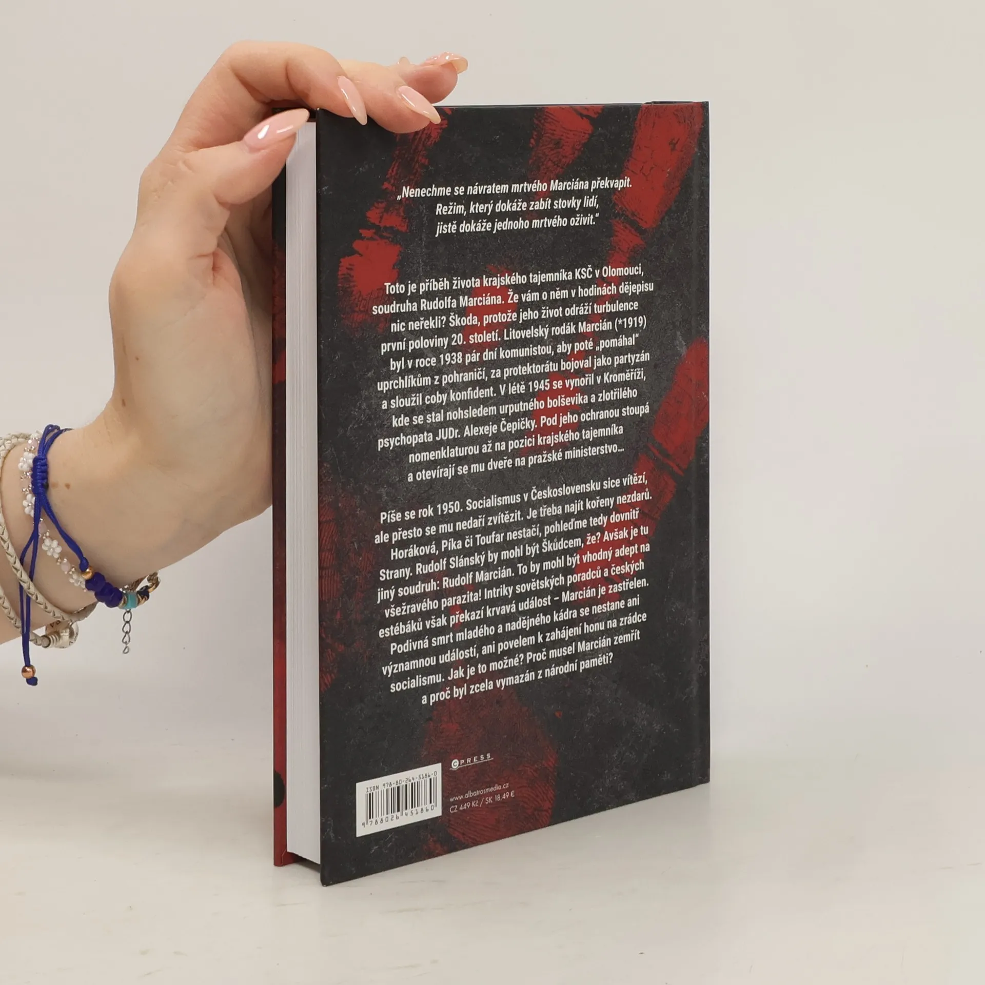 Toto je příběh života krajského tajemníka KSČ v Olomouci Rudolfa Marciána. Po hříchu málo známá postava, přitom její osudy ilustrují kus našich moderních dějin. Komunista, partyzán i konfident se po válce stal nohsledem bolševika Alexeje Čepičky. Pod jeho ochranou stoupal až do předpokoje ministerstva… aby byl v létě 1950 zavražděn. Podivná smrt nadějného kádra se nestane ani významnou událostí, ani povelem k zahájení honu na zrádce socialismu. Proč musel Marcián zemřít a proč byl vymazán z národní paměti?