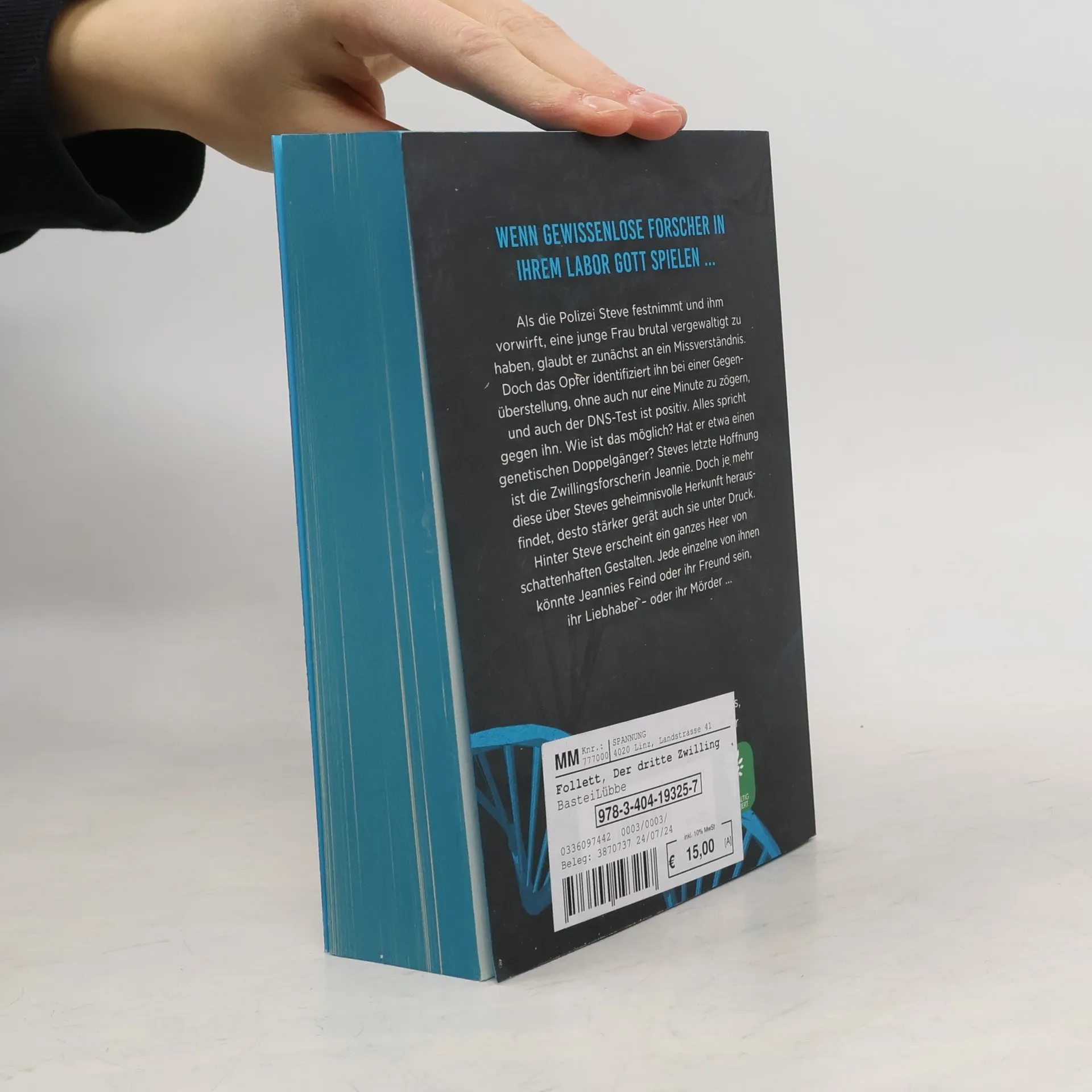 Dieses Buch gibt es in zwei Versionen: mit und ohne Farbschnitt. Sobald die Farbschnitt-Ausgabe ausverkauft ist, liefern wir die Ausgabe ohne Farbschnitt aus. Wenn gewissenlose Forscher in ihrem Labor Gott spielen ... Ken Folletts packender Gentechnik-Thriller Als die Polizei Steve festnimmt und ihm vorwirft, eine junge Frau brutal vergewaltigt zu haben, glaubt er zunächst an ein Missverständnis. Doch das Opfer identifiziert ihn bei einer Gegenüberstellung, ohne auch nur eine Sekunde zu zögern, und auch der DNS-Test ist positiv. Alles spricht gegen ihn. Wie ist das möglich? Hat er etwa einen genetischen Doppelgänger? Steves letzte Hoffnung ist die Zwillingsforscherin Jeannie. Doch je mehr diese über Steves geheimnisvolle Herkunft herausfindet, desto stärker gerät auch sie unter Druck. Hinter Steve erscheint ein ganzes Heer von schattenhaften Gestalten. Jede einzelne von ihnen könnte Jeannies Feind oder ihr Freund sein, ihr Liebhaber - oder ihr Mörder ...