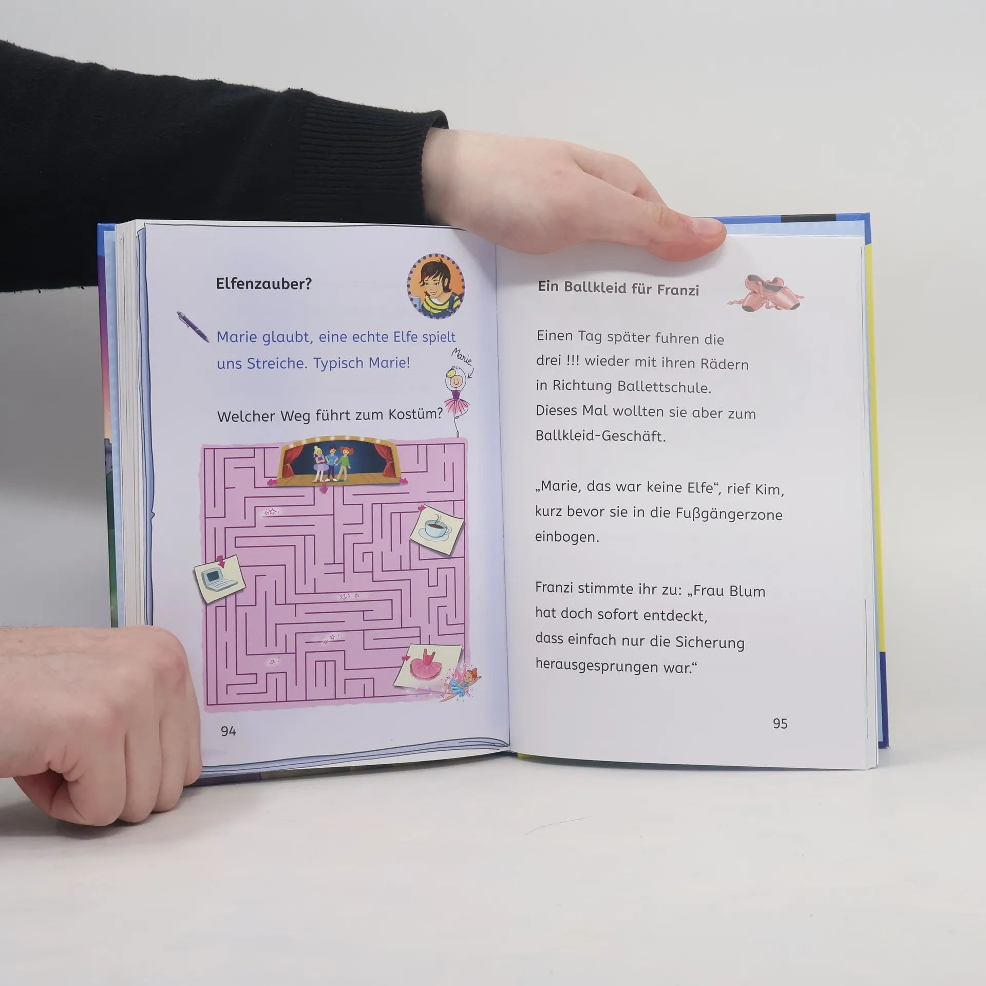 Alles Spuk? Die drei !!! besuchen ihre Freundin Hanna und sind begeistert. Im alten Schloss gibt es so viel zu entdecken! Abends soll es hier sogar spuken. Tatsächlich schweben unheimliche Lichter durch die Dunkelheit. Kim, Marie und Franzi lassen sich davon nicht beeindrucken. Mutig gehen sie auf Geisterjagd. Bald ist es so weit! In Maries Ballettschule freuen sich die Kinder auf ihren großen Auftritt. Dann verschwinden Kostüme und die Schränke werden durchwühlt. Was hat eine Elfe damit zu tun? Die drei !!! finden es heraus. Zwei Bände mit jeweils acht Kapiteln. Lesen, mitfiebern und nach jedem Kapitel ein Rätsel lösen.