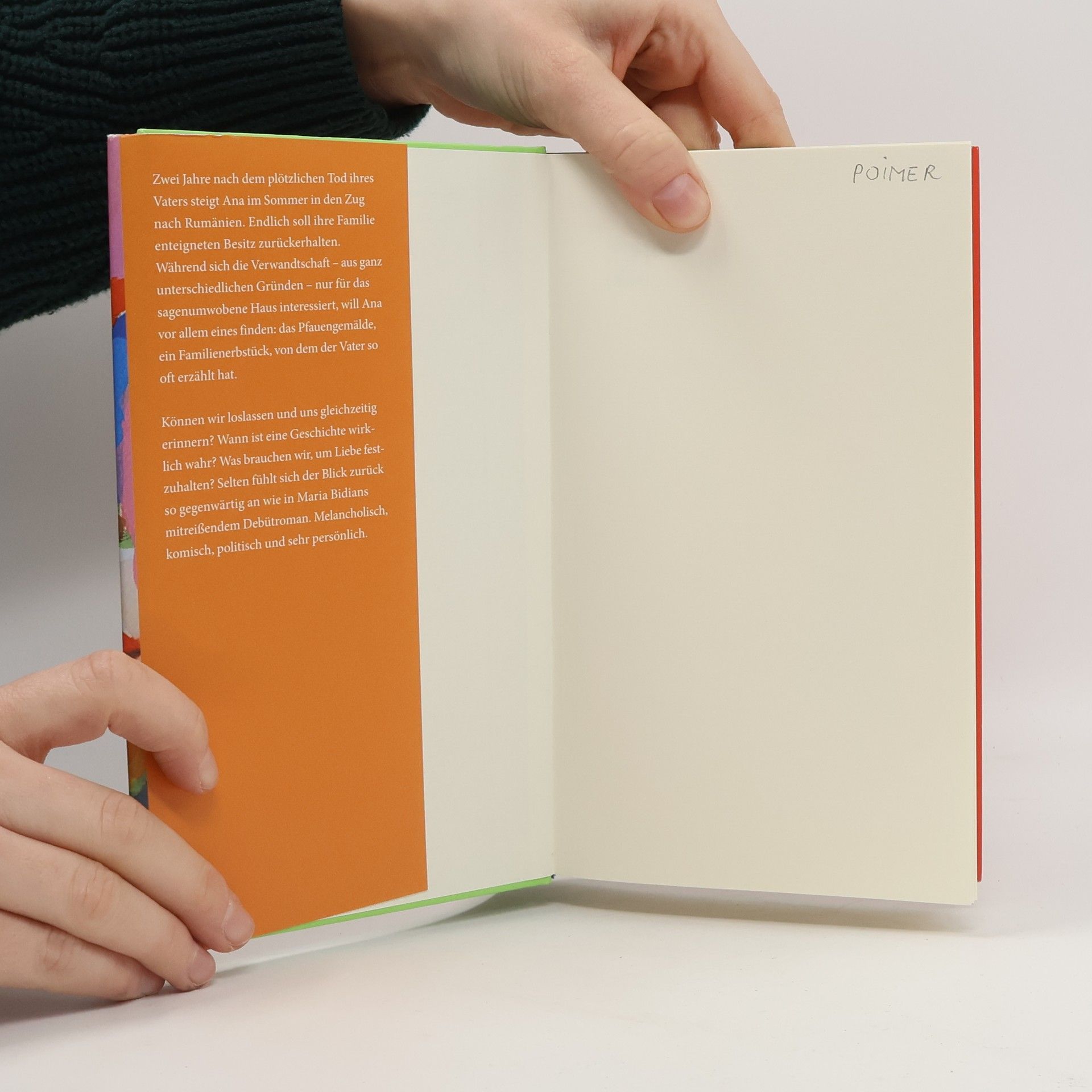 „Ein berührendes, außergewöhnliches Debüt!“ (Dana Grigorcea) – Ein Familienroman voller „schillernder, stolzer und traurig-schöner Figuren.“ (Daniela Dröscher) Zwei Jahre nach dem plötzlichen Tod ihres Vaters steigt Ana im Sommer in den Zug nach Rumänien. Endlich soll ihre Familie enteigneten Besitz zurückerhalten. Während sich die Verwandtschaft – aus ganz unterschiedlichen Gründen – nur für das sagenumwobene Haus interessiert, will Ana vor allem eines finden: das Pfauengemälde, ein Familienerbstück, von dem der Vater so oft erzählt hat. Können wir loslassen und uns gleichzeitig erinnern? Wann ist eine Geschichte wirklich wahr? Was brauchen wir, um Liebe festzuhalten? Selten fühlt sich der Blick zurück so gegenwärtig an wie in Maria Bidians mitreißendem Debütroman. Melancholisch, komisch, politisch und sehr persönlich.