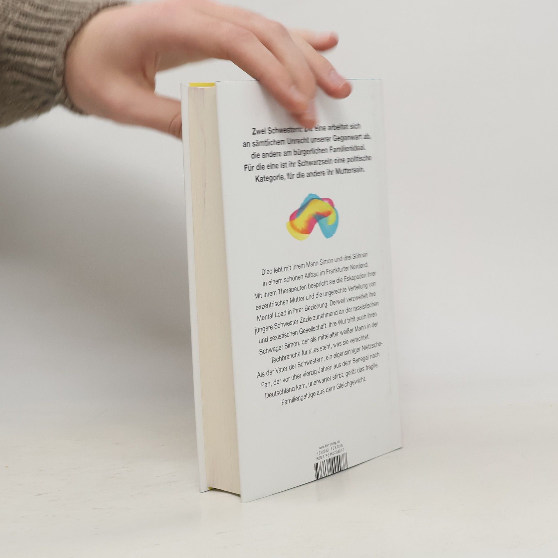 Zwei Schwestern: Die eine arbeitet sich an sämtlichem Unrecht unserer Gegenwart ab, die andere am bürgerlichen Familienideal; für die eine ist ihr Schwarzsein eine politische Kategorie, für die andere ihr Muttersein. Klug, erhellend und mit hintergründigem Witz erzählt Yandé Seck in ihrem Debütroman von den Ambivalenzen, die wir im Kleinen wie im Großen aushalten müssen. Dieo lebt mit ihrem Mann Simon und drei Söhnen in einer schönen Altbauwohnung im Frankfurter Nordend. Sie leidet unter den unerfüllbaren Ansprüchen der Gesellschaft an sie als Mutter, vor allem aber ist es die ständige Kritik ihrer jüngeren Schwester Zazie an allem und jedem, die an ihren Nerven zerrt. Auch Simon, ein mittelalter weißer Mann und Angestellter in einem Finanz-Start-up, gerät immer wieder ins Visier seiner Schwägerin, die zunehmend an der rassistischen und sexistischen Gesellschaft verzweifelt. Als der Vater der Schwestern, ein eigensinniger Nietzschefan, der vor mehr als vierzig Jahren aus dem Senegal nach Deutschland kam, unerwartet stirbt, gerät das mühsam kalibrierte Familiengefüge aus dem Gleichgewicht. Für die Beerdigung reisen die Schwestern in das Land ihres Vaters. Der Abschied wird für die beiden zu einem Neuanfang – in vielerlei Hinsicht.