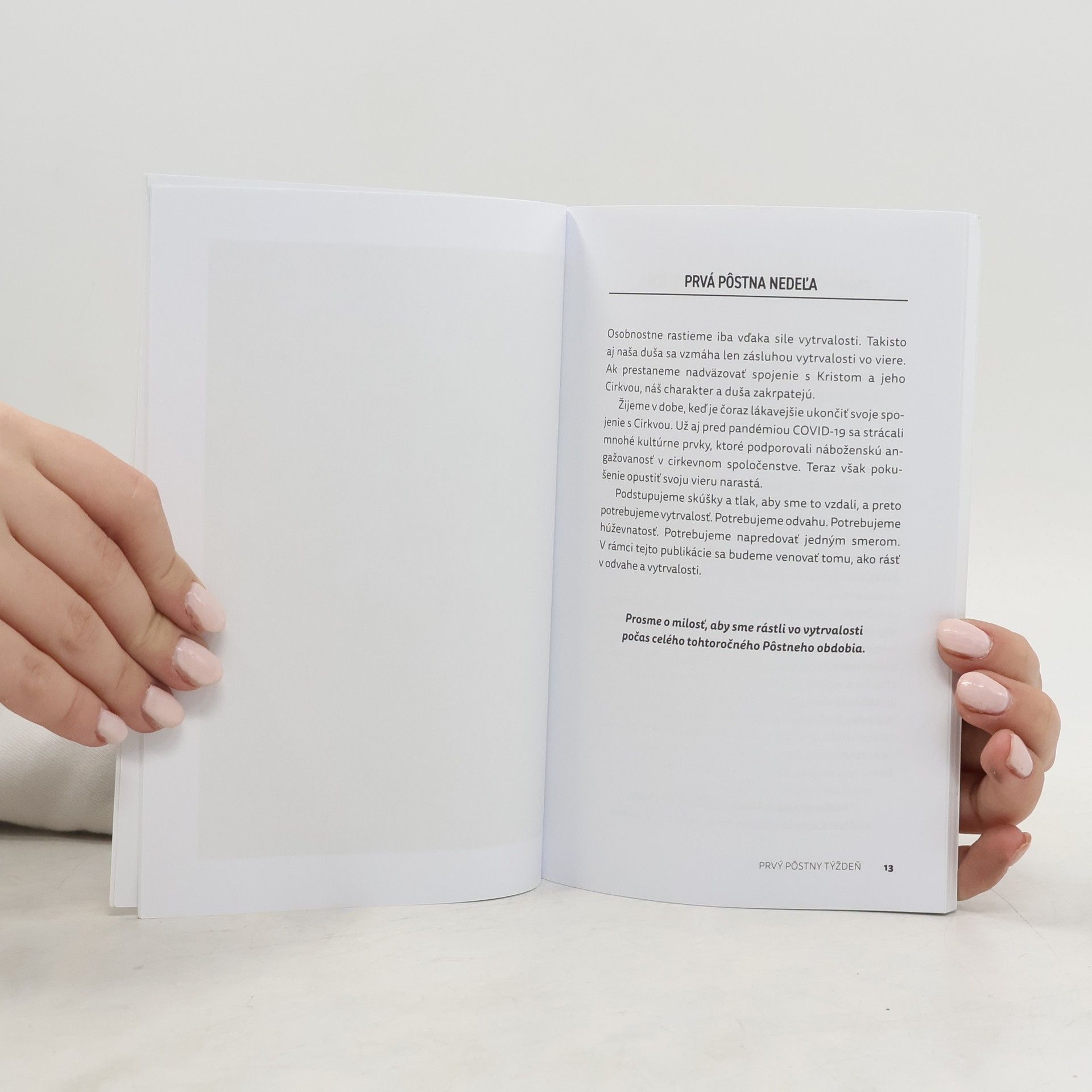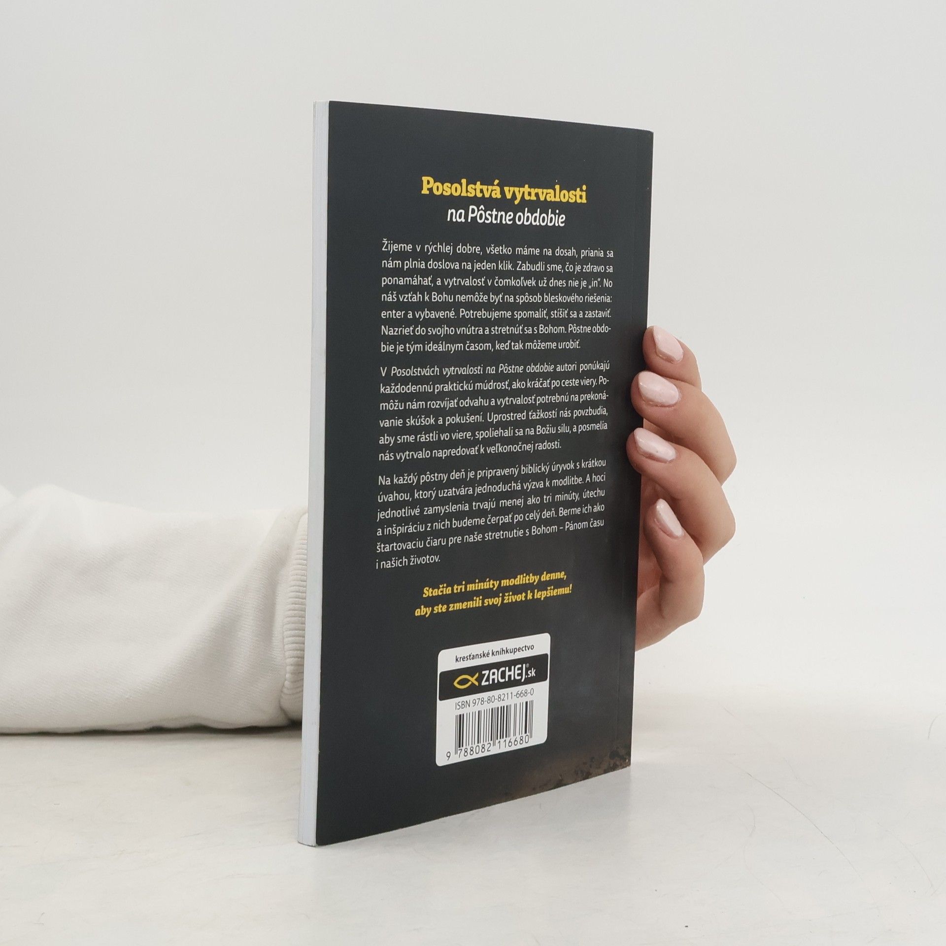 Žijeme v rýchlej dobre, všetko máme na dosah, priania sa nám plnia doslova na jeden klik. Zabudli sme, čo je zdravo sa ponamáhať, a vytrvalosť v čomkoľvek už dnes nie je „in“. No náš vzťah k Bohu nemôže byť na spôsob bleskového riešenia: enter a vybavené. Potrebujeme spomaliť, stíšiť sa a zastaviť. Nazrieť do svojho vnútra a stretnúť sa s Bohom. Pôstne obdobie je tým ideálnym časom, keď tak môžeme urobiť. V Posolstvách vytrvalosti na Pôstne obdobie autori ponúkajú každodennú praktickú múdrosť, ako kráčať po ceste viery. Pomôžu nám rozvíjať odvahu a vytrvalosť potrebnú na prekonávanie skúšok a pokušení. Uprostred ťažkostí nás povzbudia, aby sme rástli vo viere, spoliehali sa na Božiu silu a posmelia nás vytrvalo napredovať k veľkonočnej radosti. Na každý pôstny deň je pripravený biblický úryvok s krátkou úvahou, ktoré uzatvára jednoduchá výzva k modlitbe. A hoci jednotlivé zamyslenia trvajú menej ako tri minúty, útechu a inšpiráciu z nich budeme čerpať po celý deň. Berme ich ako štartovaciu čiaru pre naše stretnutie s Bohom – Pánom času i našich životov. Stačia tri minúty modlitby denne, aby ste zmenili svoj život k lepšiemu! Pôvodnému vydaniu bol udelený Imprimatur.