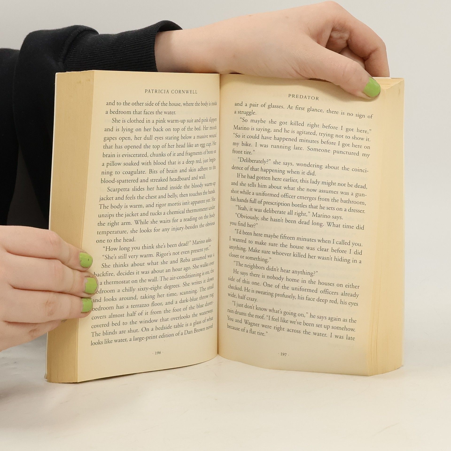 "Florida is full of predators, from the animals who thrive in its humid heat to the humans who stalk the air-conditioned malls, and they all give Dr Kay Scarpetta, now Director of Forensic Science and Medicine at the National Forensic Academy, the opportunity and the means to do what she does best - persuading the dead to speak to her. In the icy chill of Boston, Benton Wesley is working on a secret project involving convicted killers, one of whom appears to confess to an even higher number of murders than the authorities had known about. It is a project that gives Scarpetta deep disquiet, as does the behaviour of her neice Lucy, who is spending too much time drinking and indulging in causal pickups in cheap bars. Then the Academy is called in to assist in the discovery of a young woman's body in Massachusetts. She has been tortured and sexually abused, her body tattooed with handprints. The same sort of handprints Lucy has seen on the flesh of her latest pick-up..." - back cover.