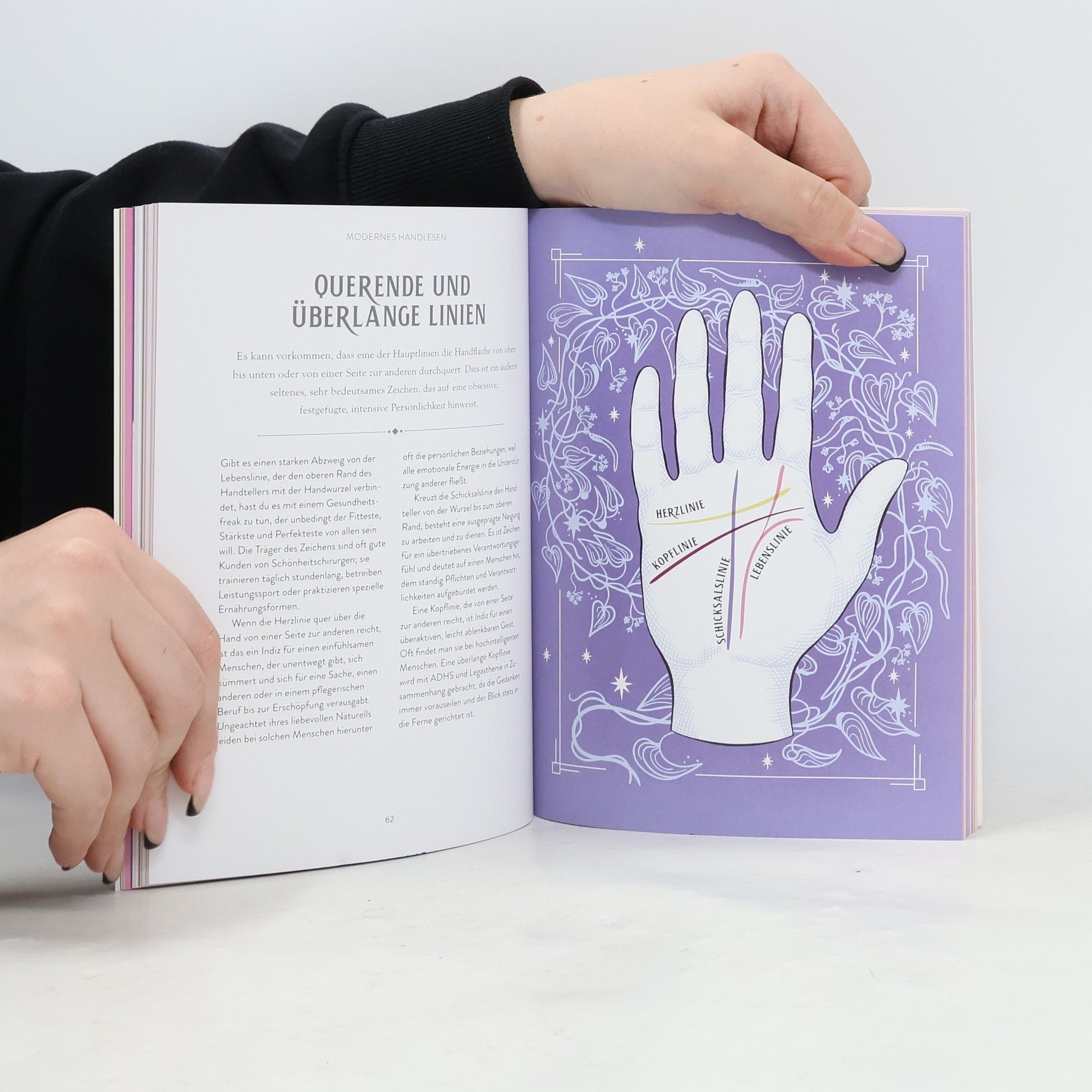 Handlesen auf die moderne Art Die Technik der Chiromantie ist beinahe so alt wie die menschliche Zivilisation. Dieser moderne, aufwendig illustrierte Ratgeber des professionellen Handlesers Johnny Fincham bietet einen umfassenden Überblick über die Tradition des Handlesens und zeigt detailliert die Bedeutungen hinter den Formen und Linien unserer Hände. Zunächst werden die Grundlagen wie aktive und passive Hand, die Rolle unterschiedlicher Handformen und die Länge der einzelnen Finger vermittelt. Wir erfahren außerdem, welche Bedeutung Herzlinie, Lebenslinie und Schicksalslinie sowie andere Muster auf der Handfläche haben und was sie uns über Persönlichkeitsmerkmale, charakterliche Besonderheiten und Entwicklungspotenziale verraten. Auch die Interpretation der Nebenlinien wird erklärt, ebenso wie die Papillarlinien und sogar die Fingerabdrücke, die erst seit relativ kurzer Zeit in die Deutung der Hände einbezogen werden. Dank der farbigen Abbildungen zu jedem Aspekt des Handlesens sowie des Kapitels mit Übungshänden inkl. Lösungen können wir sofort in diese faszinierende Divinationsmethode einsteigen. Ein echtes Handbuch und eine leicht verständliche, zeitgemäße und umfassende Praxisanleitung, um das Handlesen zu lernen.