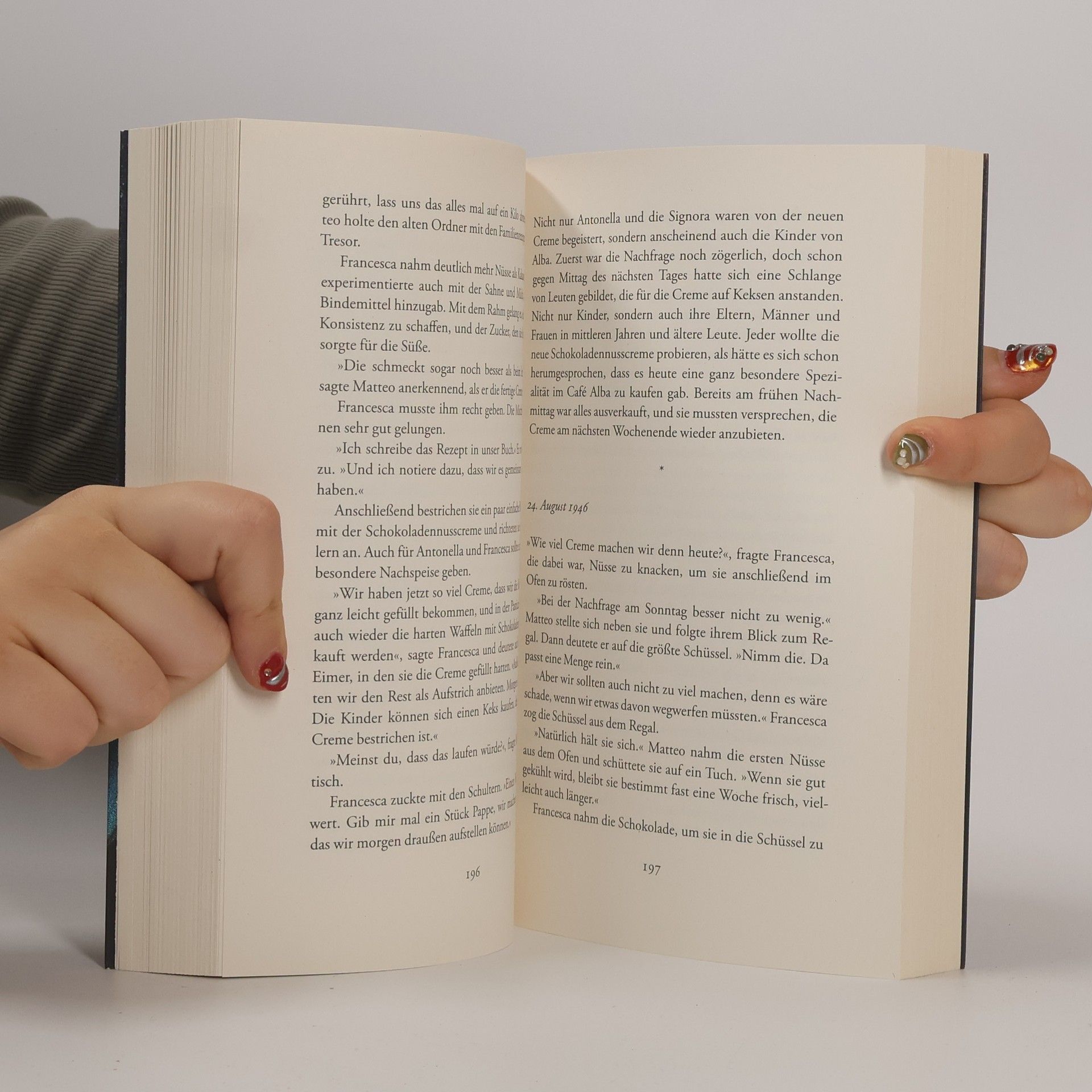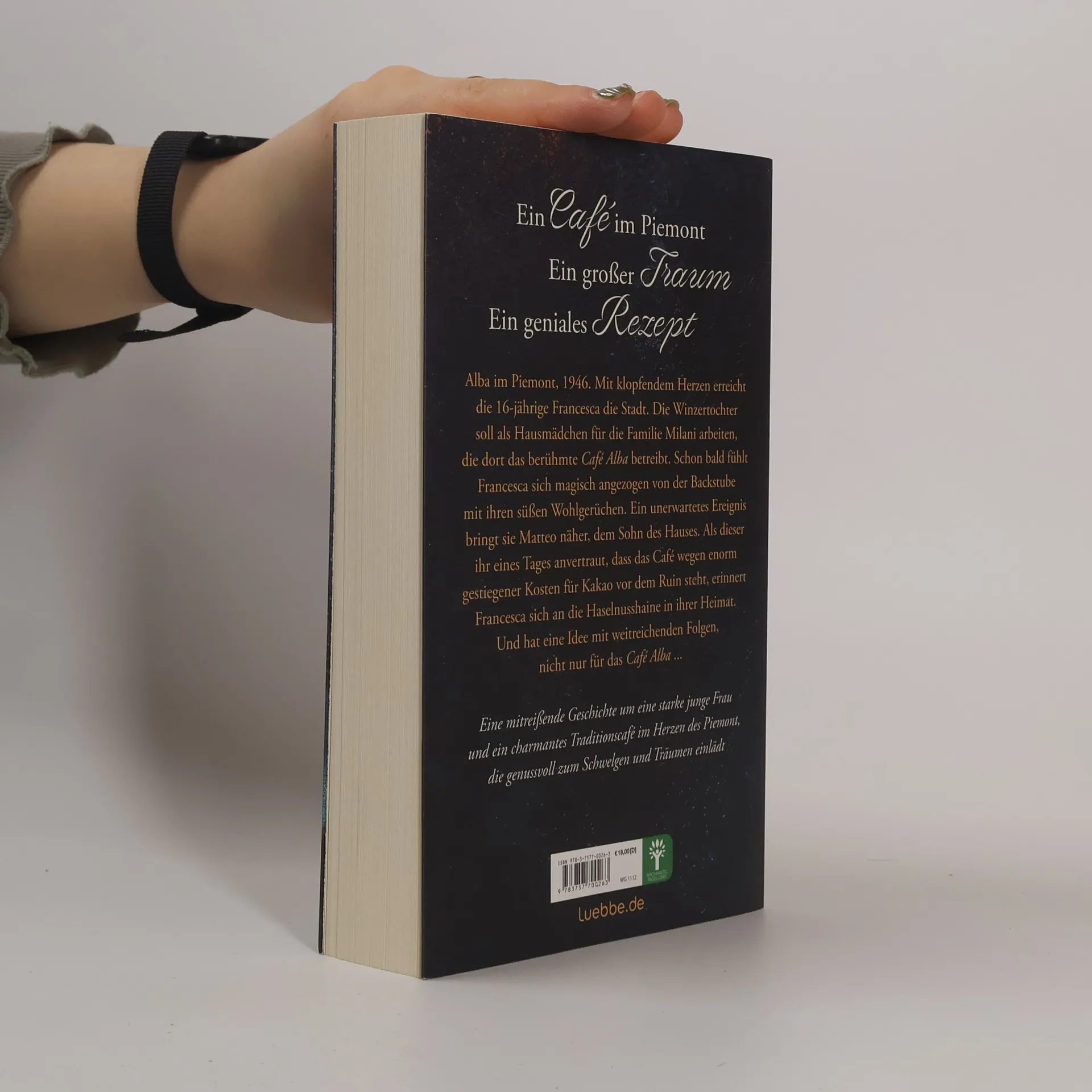 Ein Café im Piemont. Ein großer Traum. Ein geniales Rezept Alba im Piemont, 1946. Mit klopfendem Herzen erreicht die 16-jährige Francesca die Stadt. Die Winzertochter soll als Hausmädchen für die Familie Milani arbeiten, die dort das berühmte Café Alba betreibt. Schon bald fühlt Francesca sich magisch angezogen von der Backstube mit ihren süßen Wohlgerüchen. Ein unerwartetes Ereignis bringt sie Matteo näher, dem Sohn des Hauses. Als dieser ihr eines Tages anvertraut, dass das Café wegen enorm gestiegener Kosten für Kakao vor dem Ruin steht, erinnert Francesca sich an die Haselnusshaine in ihrer Heimat. Und hat eine Idee mit weit reichenden Folgen, nicht nur für das Café Alba ... Eine mitreißende Geschichte um eine starke junge Frau und ein charmantes Traditionscafé im Herzen des Piemont, die genussvoll zum Schwelgen und Träumen einlädt