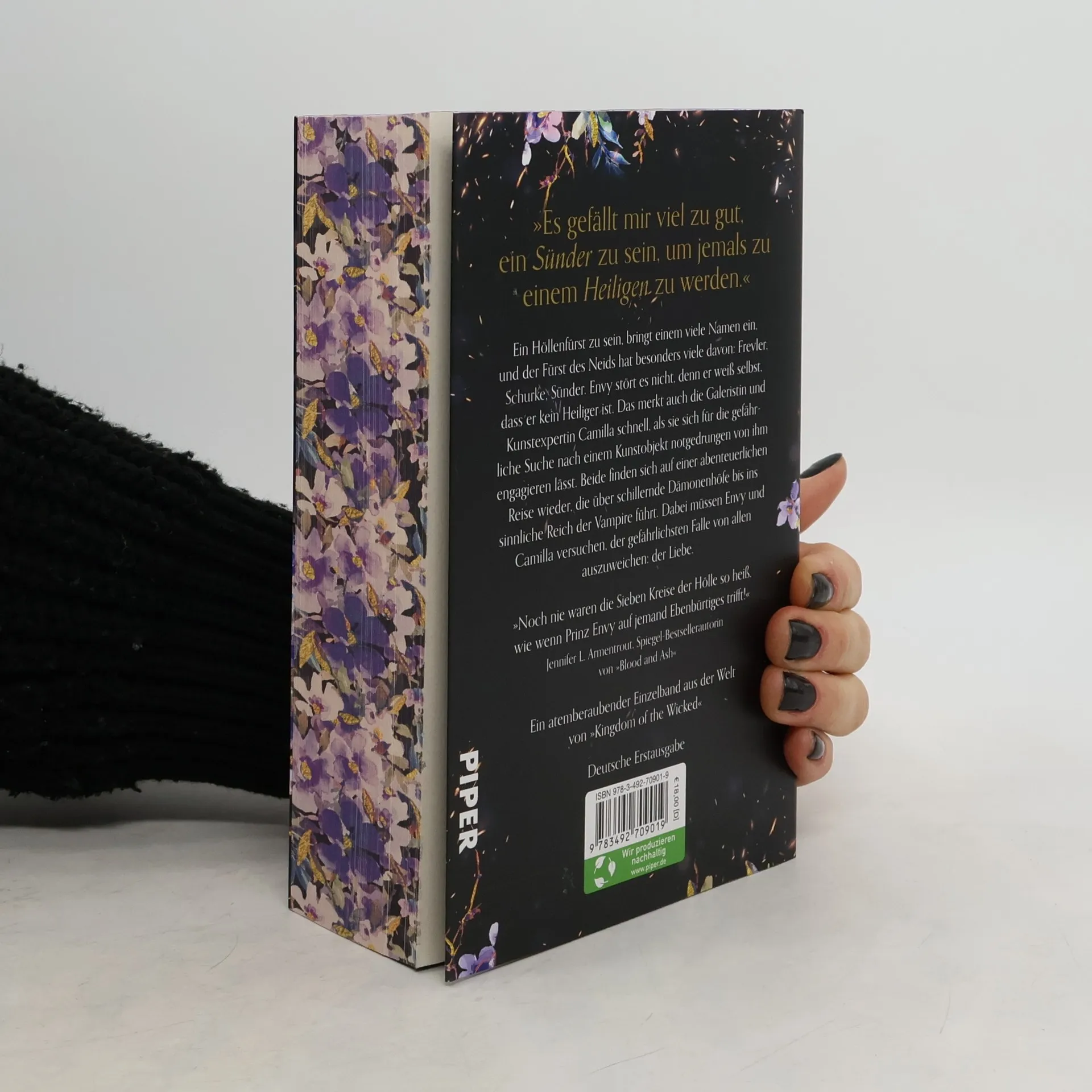Der Fürst des Neids hat viele Namen: Frevler, Schurke, Sünder. Er stört sich nicht daran, denn er weiß selbst, dass er kein Heiliger ist. Als er eine kryptische Nachricht erhält, die den Beginn eines tödlichen Spiels ankündigt, weiß er, dass er noch viel schlimmere Namen zugeschrieben bekommen wird, bevor es endet. Das Problem mit Schurken und Halunken ist, dass sie kein Fünkchen Ehre im Leib haben – eine Tatsache, die Miss Camilla Antonius auf die schmerzhafte Art erfährt, denn sie wird von einem mächtigen Lord erpresst. Da trifft sie auf den mysteriösen Lord Ashford Synton, genannt »Syn«, der ihr einen Deal anbietet – denn nur sie, mit ihrem einzigartigen künstlerischen Talent, kann ihm helfen, ein illustres Kunstobjekt zu finden. Um ihrer Vergangenheit zu entgehen, willigt Camilla ein. Gemeinsam müssen Envy und Camilla sich auf eine gefährliche Reise begeben, die von schillernden Dämonenhöfen bis hin zum sinnlichen Reich der Vampire führt, und dabei versuchen, der gefährlichsten Falle von allen auszuweichen: der Liebe. Ein prickelndes Spin Off aus der Welt von »Kingdom of the Wicked«. Der Einzelband rund um den Fürsten Envy kann unabhängig von den anderen Bänden gelesen werden.