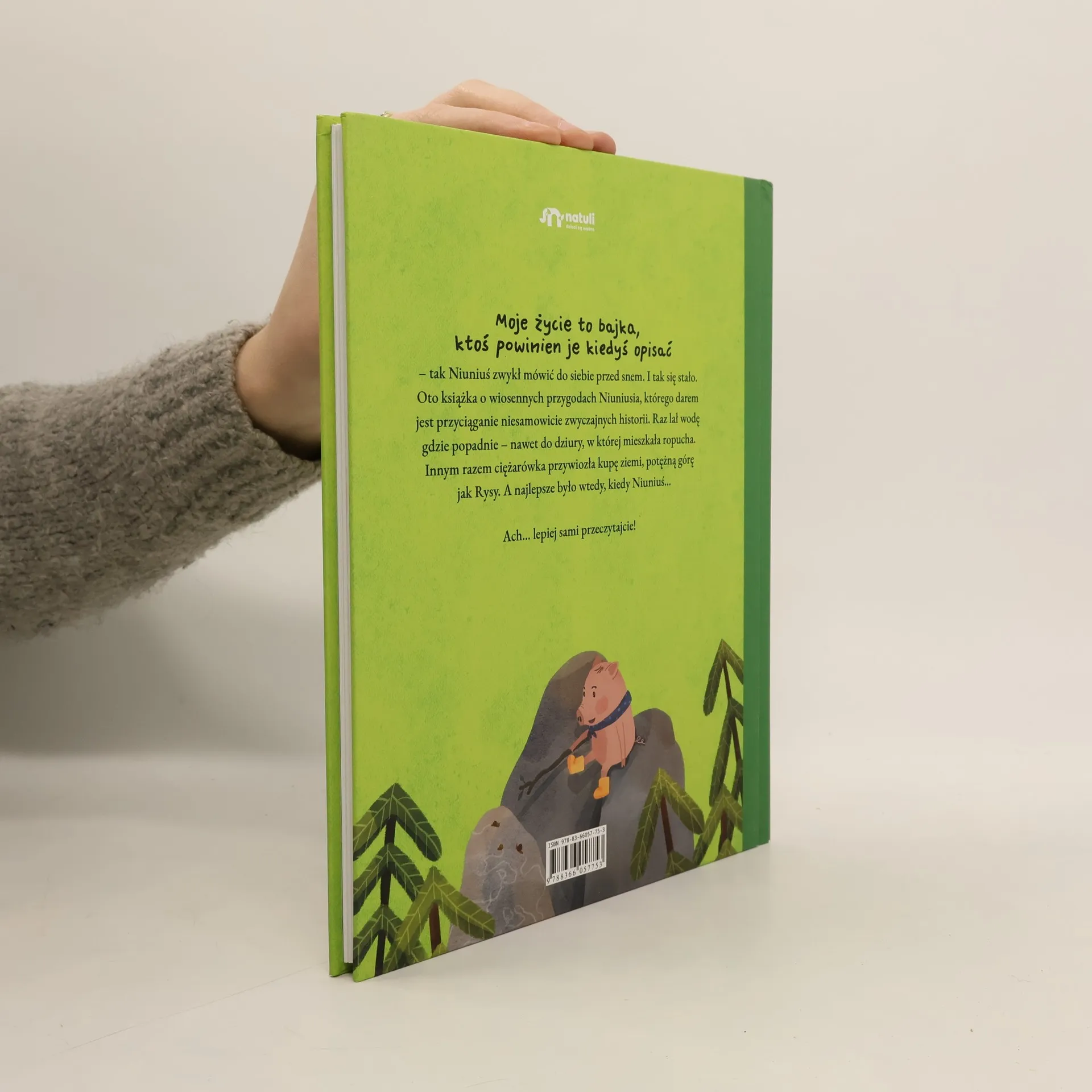Niuniuś i wiosnaŻycie małej świnki utkane jest ze zwyczajnych dni, podczas których wydarzają się zwyczajno-niezwyczajne rzeczy. Nadeszła wiosna! Wywrotka wysypuje ziemię przywiezioną do warzywnika, paw w gospodarstwie gubi pióro, a kuzynka naprawdę zjada wiosenną zupę z błota! Przyjemnie jest być Niuniusiem, mieć czas na zabawę i powolne odkrywanie świata. Z dziecięcym zapałem czegoś bardzo chcieć lub nie chcieć, doświadczać życia wszystkimi zmysłami, popełniać błędy, przeżywać emocje i zawsze móc schronić się w bezpiecznych ramionach rodziców. Opowieść o Niuniusiu to pochwała prostego życia, łagodnego rodzicielstwa i dzieciństwa.