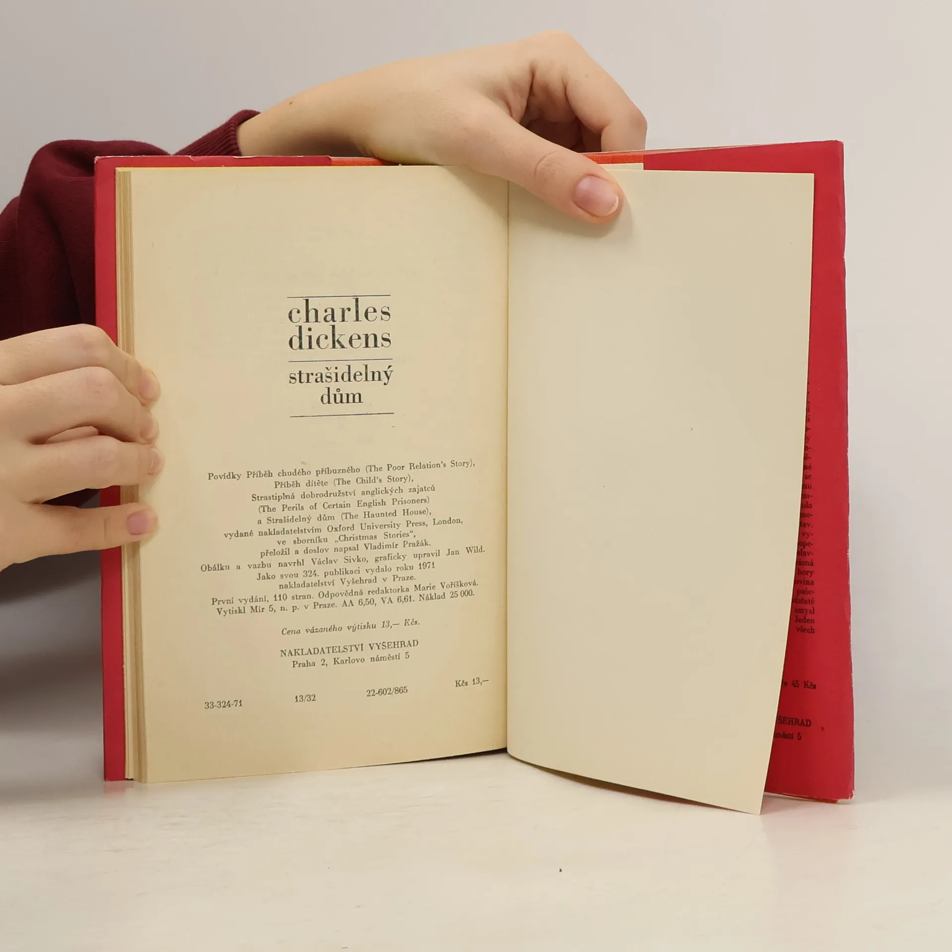 Soubor povídek ze sborníku „Christmas Stories“:- Příběh chudého příbuzného- Příběh dítěte- Strastiplná dobrodružství anglických zajatců- Strašidelný důmVýbor povídek chce připomenout Dickense jako autora usilujícího o oslavu člověka a jeho základní ctnosti - lásky. Povídka Příběh chudého příbuzného je prostoupena soucitem a pochopením pro osamělého člověka, kterým každý opovrhuje. V pohádkově laděném Příběhu dítěte dominuje soucit s bezbranným a utlačovaným dětstvím. Nejdelší povídka tohoto výboru Strastiplná dobrodružství anglických zajatců vypráví o boji pirátů s malou anglickou posádkou na tichomořském ostrůvku. Závěrečná povídka Strašidelný dům je úsměvnou parodií na duchařské příběhy a spiritistickou náruživost.