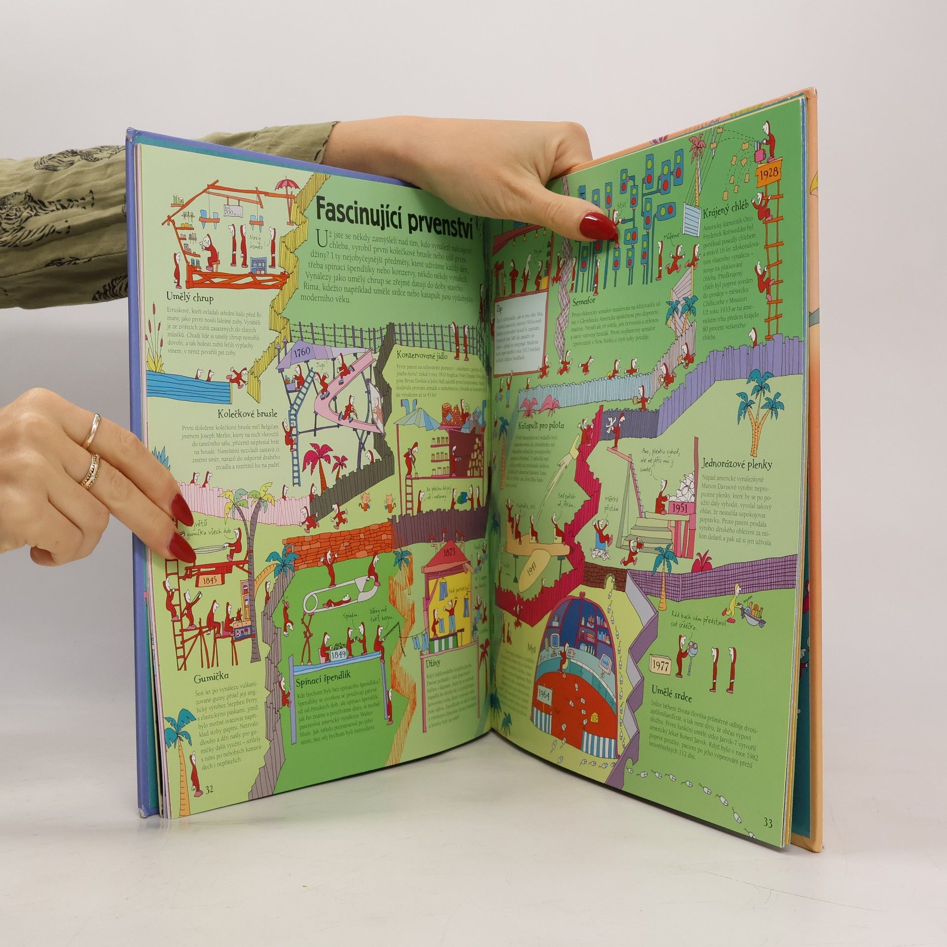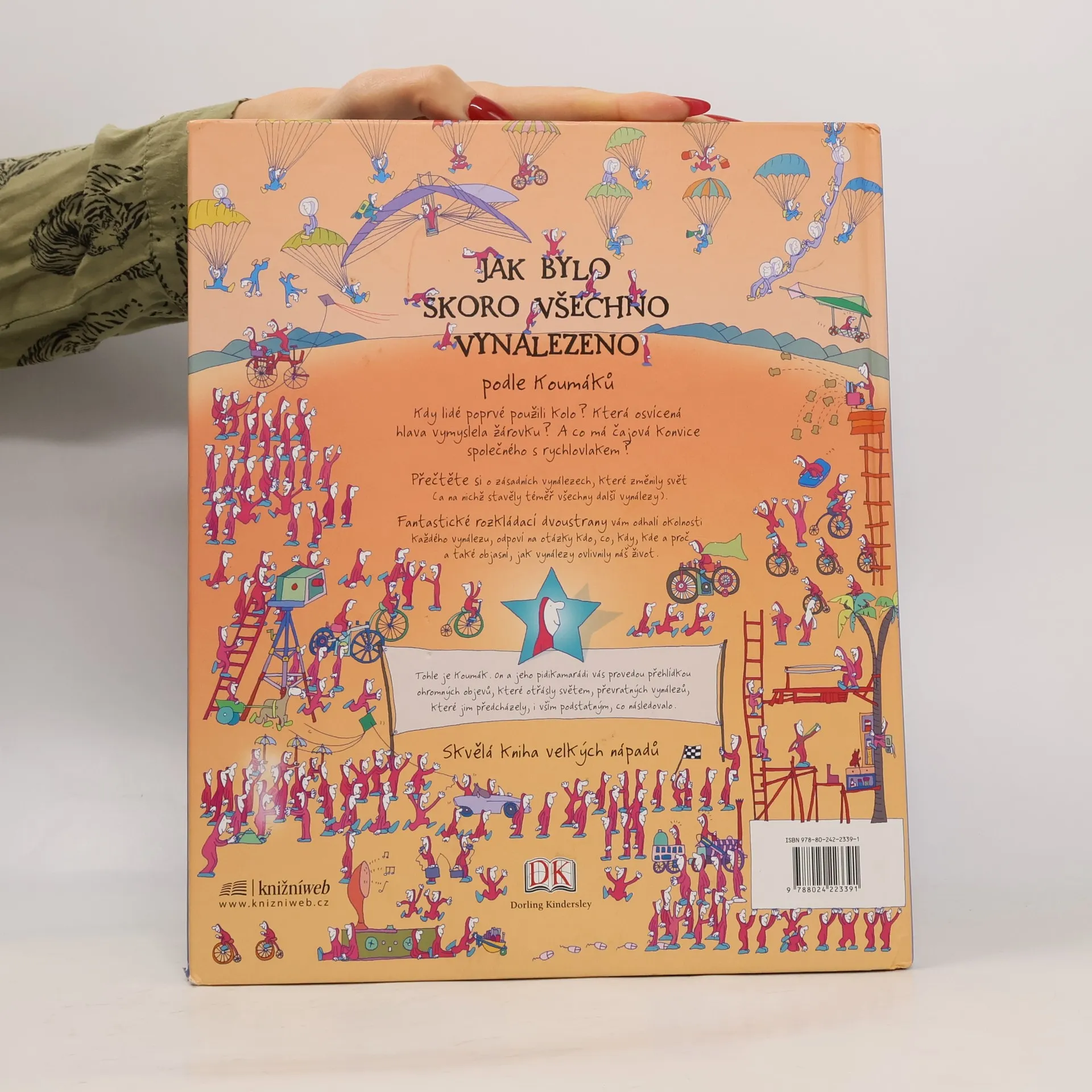 Koumáci, všetečné a zvídavé postavičky, vás zvou na fantastickou výpravu a prozradí vám všechno o nejdůležitějších vynálezech, které zásadně změnily život lidstva. Nepředstavíme jenom jednotlivé stroje a chytré věcičky, ale dozvíte se také, co jim předcházelo, jak došlo k jejich vynalezení, kdo je vymyslel – a k čemu to vedlo. V knize je také spousta rozkládacích dvoustran, takže se všechno podstatné dozvíte v jediném přehledném celku. Můžete zkoumat matky, šrouby a ventily motoru s vnitřním spalováním a vzápětí se přesvědčit, jak jeho vynález přispěl k tomu, že se stroje vznesly do vzduchu. Prohlédnete si první čočky a pak se podíváte, jak se postupně vyvinuly nejmodernější digitální fotoaparáty. Odhalíte, jak tranzistory a mikročipy připravily půdu pro vesmírný výzkum za pomoci robotů, a zjistíte, že utajované válečné technologie vedly mimo jiné až k vynálezu osobních počítačů. Mějte oči na stopkách a dívejte se, jak všechny tyhle střípky informací Koumáci poskládají dohromady.