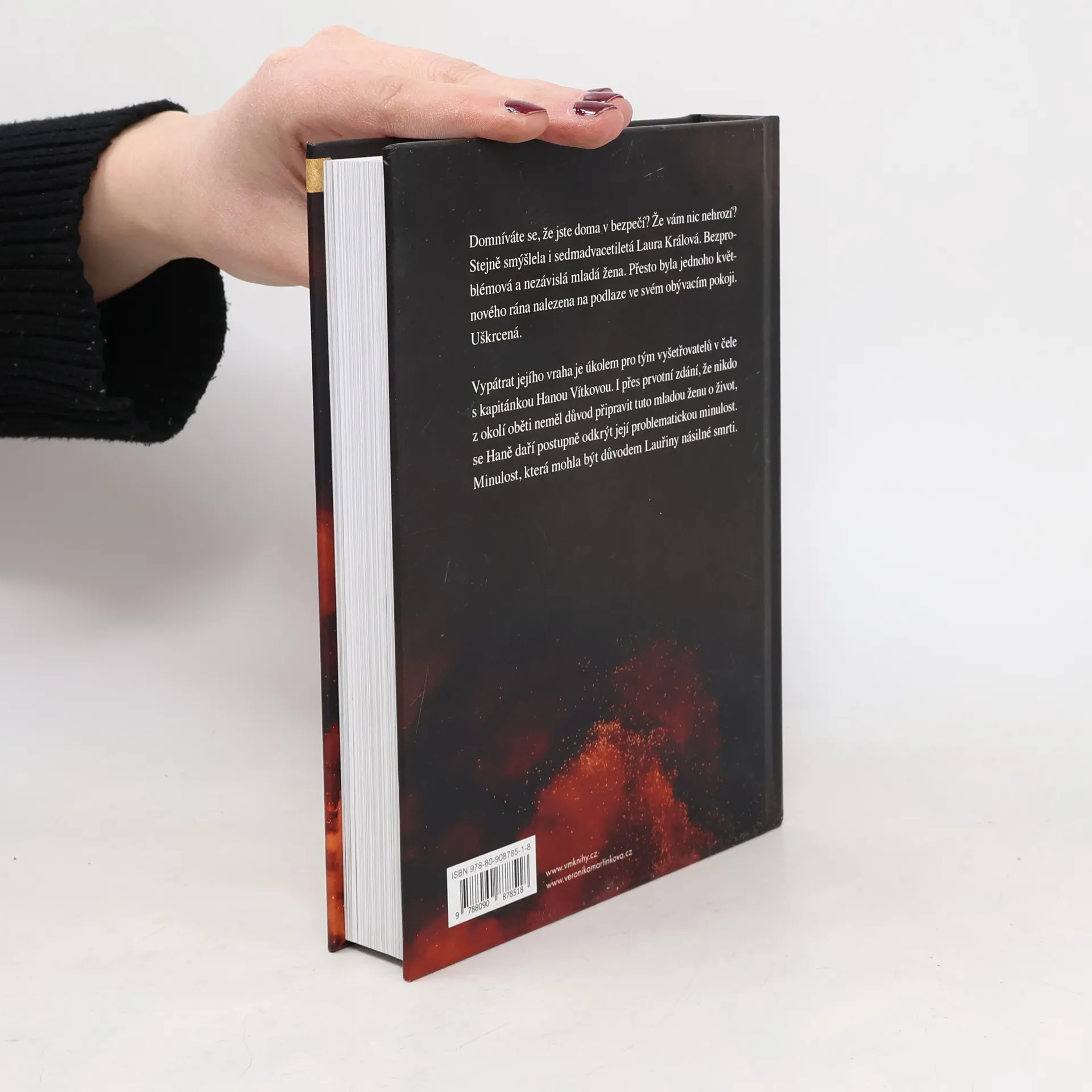 Domníváte se, že jste doma v bezpečí? Že vám nic nehrozí? Stejně smýšlela i sedmadvacetiletá Laura Králová. Bezproblémová a nezávislá mladá žena. Přesto byla jednoho květnového rána nalezena na podlaze ve svém obývacím pokoji. Uškrcená. Vypátrat jejího vraha je úkolem pro tým vyšetřovatelů v čele s kapitánkou Hanou Vítkovou. I přes prvotní zdání, že nikdo z okolí oběti neměl důvod připravit tuto mladou ženu o život, se Haně daří postupně odkrýt její problematickou minulost. Minulost, která mohla být důvodem Lauřiny násilné smrti.