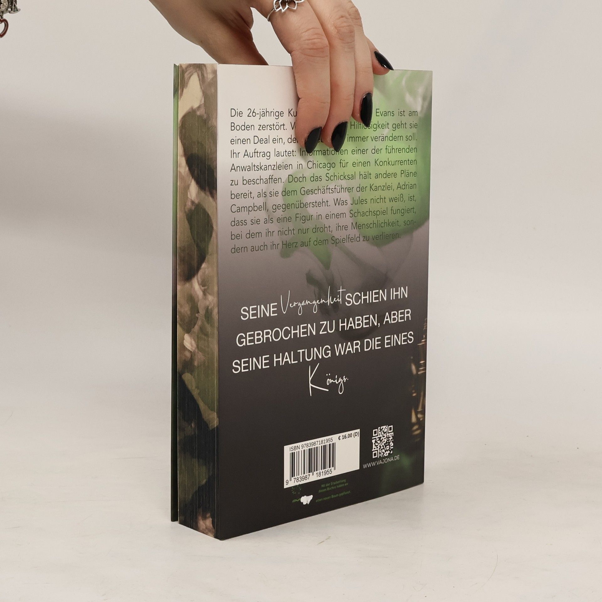 *SEINE VERGANGENHEIT SCHIEN IHN GEBROCHEN ZU HABEN, ABER SEINE HALTUNG WAR DIE EINES KÖNIGS.* Die 26-jährige Kunststudentin Julianna Evans ist am Boden zerstört. Verloren in ihrer Hilflosigkeit geht sie einen Deal ein, der ihr Leben für immer verändern soll. Ihr Auftrag lautet: Informationen einer der führenden Anwaltskanzleien in Chicago für einen Konkurrenten zu beschaffen. Doch das Schicksal hält andere Pläne bereit, als sie dem Geschäftsführer der Kanzlei, Adrian Campbell, gegenübersteht. Was Jules nicht weiß, ist, dass sie als eine Figur in einem Schachspiel fungiert, bei dem ihr nicht nur droht, ihre Menschlichkeit, sondern auch ihr Herz auf dem Spielfeld zu verlieren.