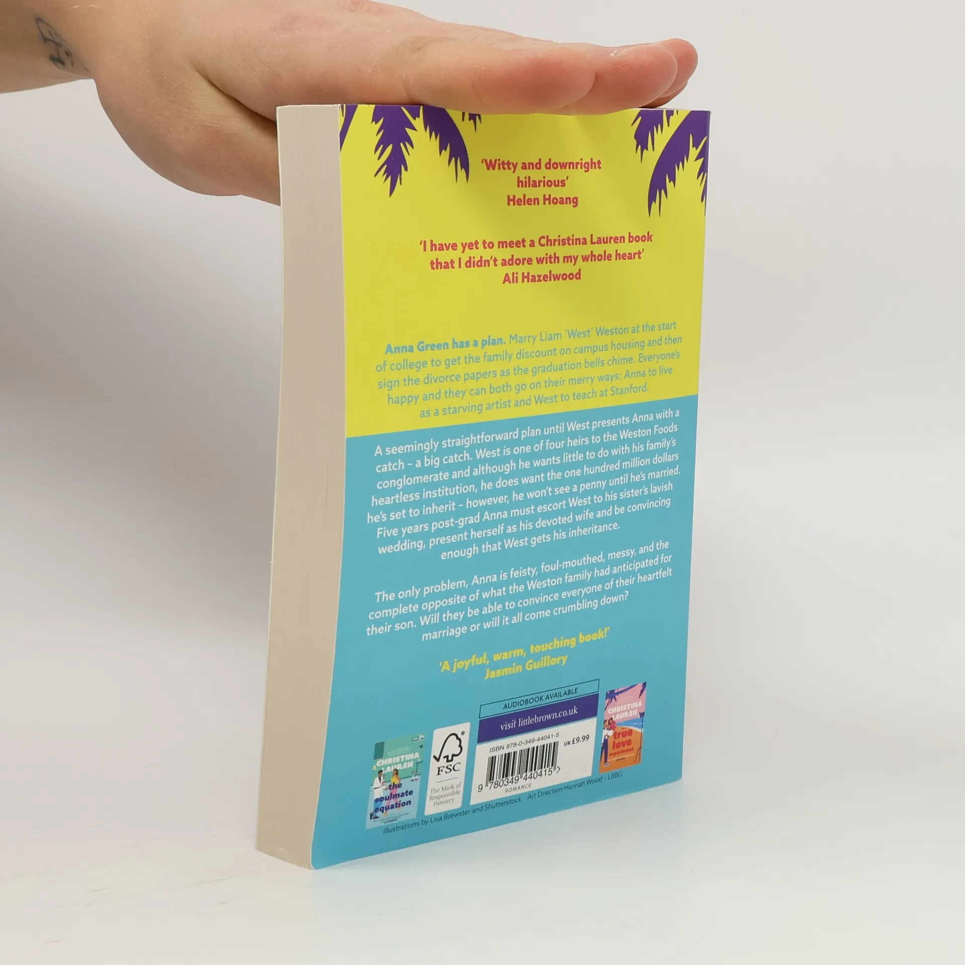 In this latest escapist romance from a New York Times bestselling author, an intense yet comforting story unfolds between a buttoned-up grocery heir and his free-spirited artist ex as they fake a relationship to secure a massive inheritance. Anna Green believed she was marrying Liam 'West' Weston for access to subsidized housing during their UCLA days, thinking she had signed divorce papers after graduation. Fast forward three years, Anna is a struggling artist while West has become a Stanford professor. Despite being an heir to the Weston Foods fortune, he is reluctant to join the family business but is motivated by the allure of a one-hundred-million-dollar inheritance. The catch? An outdated clause in his grandfather's will states he must be happily married for five years to claim it. As pressure mounts from his family to present his spouse, Liam turns to Anna, his unrefined ex-wife. However, as they navigate the challenges of wealth and family expectations, Liam must confront whether the cost of maintaining their facade is worth risking the genuine love that unexpectedly blossoms between them. This tale promises to be sexy, heartfelt, and filled with humor, making it a delightful read for romance enthusiasts.