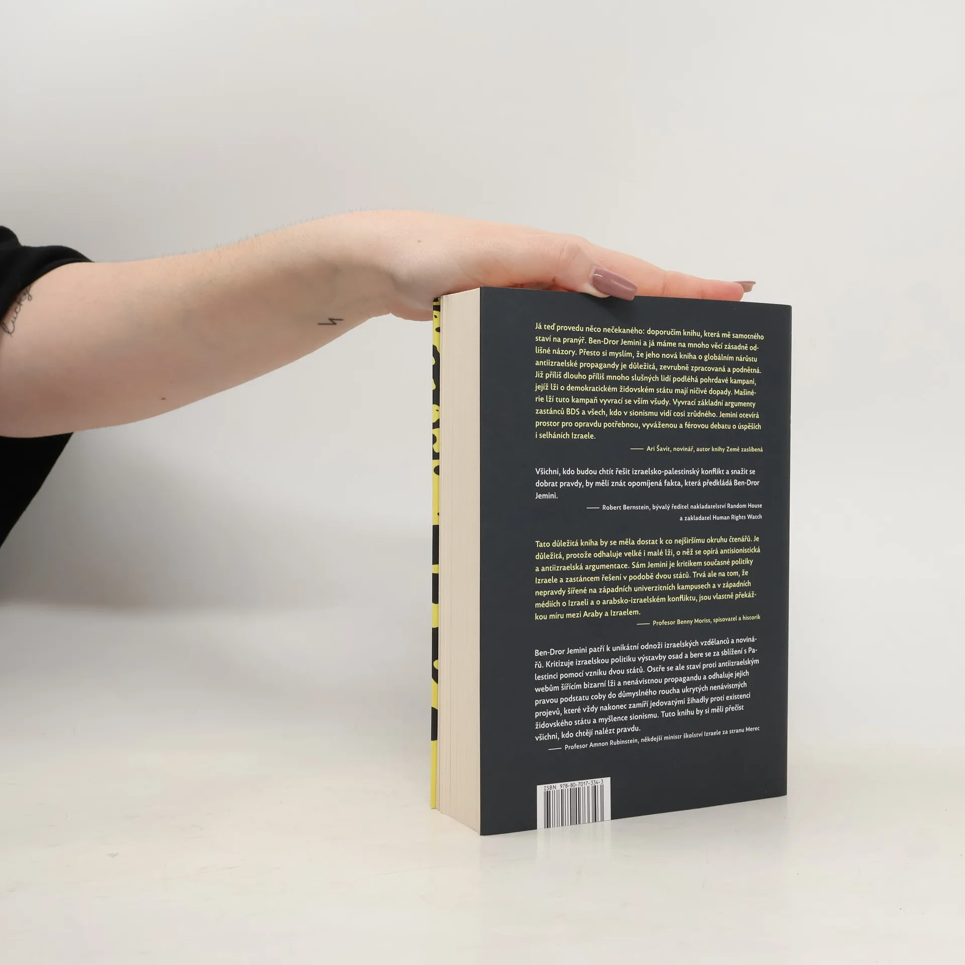 Autor v tomto podnětném a přehledně zpracovaném svazku předkládá hloubkovou analýzu řady nepřesných a lživých obvinění vznesených proti Izraeli a jedno po druhém je vyvrací. Vyzývá k novému zamyšlení nad příčinami a důsledky izraelsko-arabského konfliktu, přičemž jasně rozlišuje mezi legitimní kritikou a průmyslem lží, který je jedním z největších podvodů posledních desetiletí, podvodem historických, ba přímo epických rozměrů. V jeho důsledku se Izrael stal ztělesněním ďábla v očích mnoha jinak dobrých a rozumných lidí – lidí, kteří si přejí mír, ale nechtěně přispívají k pokračování tohoto tragického konfliktu. Všichni, kdo budou chtít řešit izraelsko-palestinský konflikt a snažit se dobrat pravdy, by měli znát opomíjená fakta, která předkládá Ben- Dror Jemini. Robert Bernstein, zakladatel Human Rights Watch