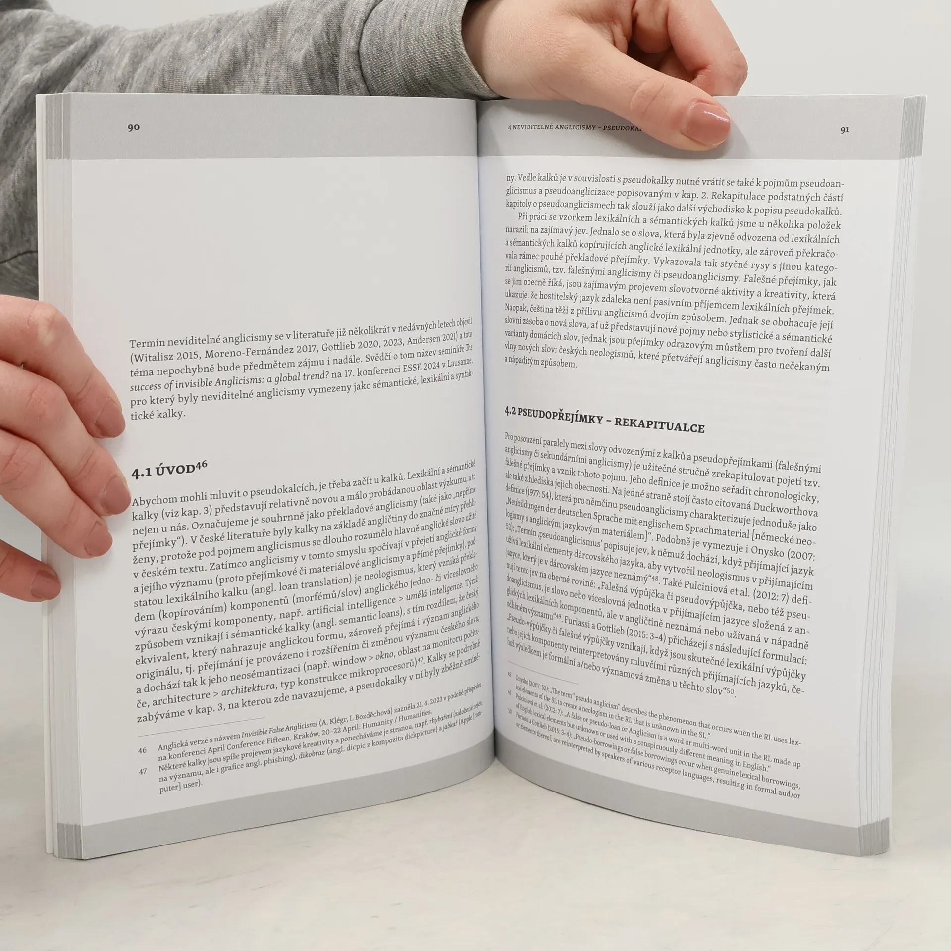 Publikace poprvé u nás představuje méně známé formy anglicismů v češtině. Uvádí do tematiky (klasifikace anglicismů, motivace přejímání), ale jádrem jsou původní studie opomíjených typů: pseudoanglicismy (české novotvary z přímých přejímek), lexikální a sémantické kalky, pseudokalky (novotvary založené na kalcích) a hybridní anglicismy. Jedna kapitola zkoumá možnosti klasifikace anglicismů podle definičních rysů, druhá slovotvornou kreativitu českých mluvčích u anglicismů. Poslední rekapituluje poznatky z jednotlivých studií. Cílem publikace je propojit domácí a zahraniční výzkum anglicismů, které češtinu ovlivňují a nadále ovlivňovat budou.