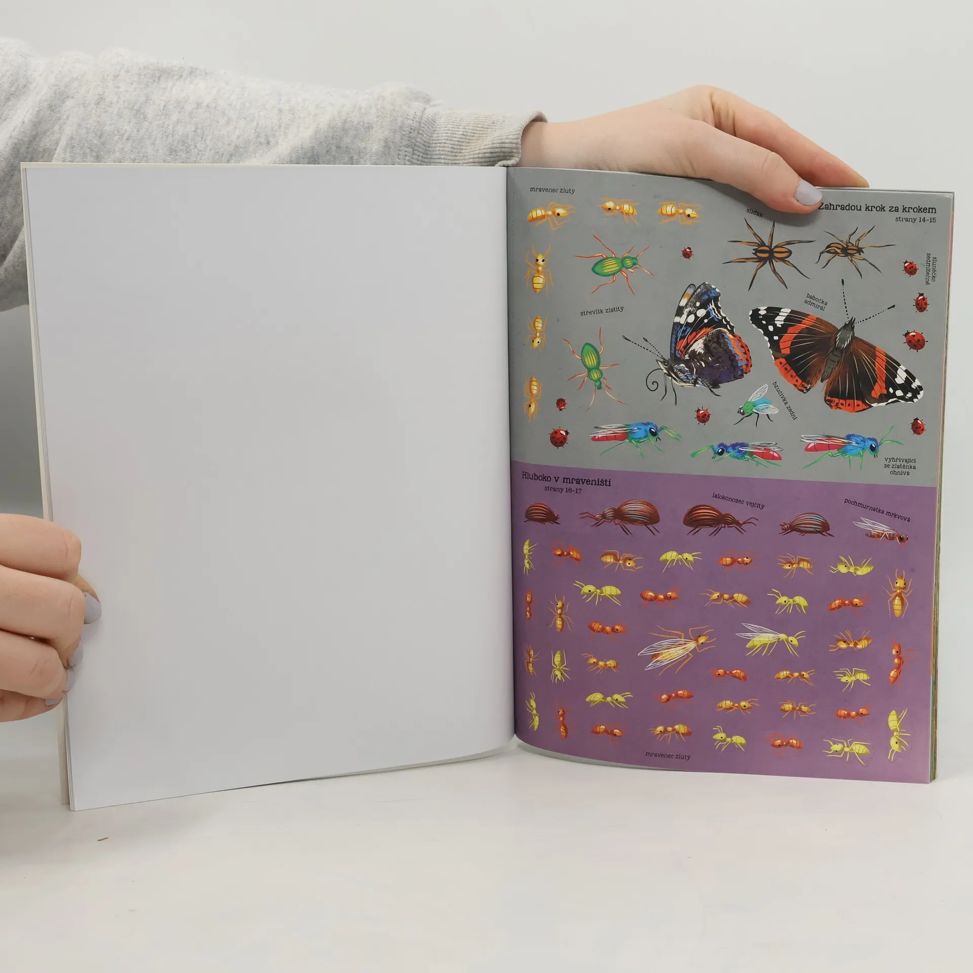 S touto bohatě ilustrovanou knížkou se malí čtenáři přidají ke dvěma odvážným průzkumníkům na cestě po fascinujícím mikrosvětě hmyzu a dozvědí se o něm mnoho zajímavých informací. Budou vtaženi do napínavého příběhu, celostránkové obrázky pak můžou oživit a podle instrukcí doplnit samolepkami různých druhů hmyzu z vložených archů.